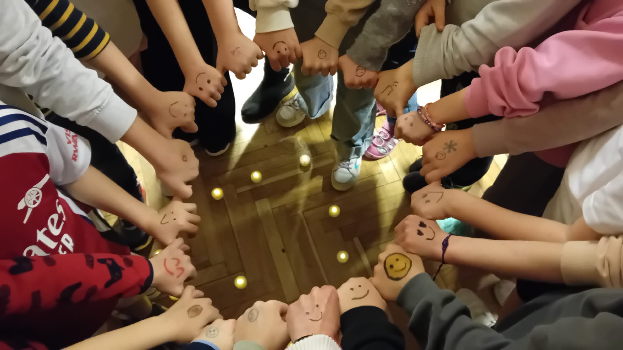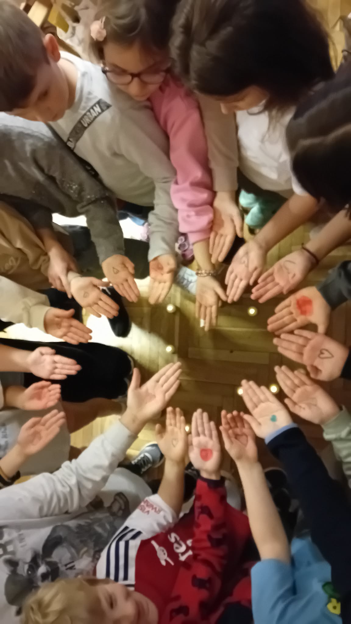 Novemberben a társas kapcsolatok hónapjában kedvesség délután tartottunk, ami során az erősségkártyák segítségével először mindenki magáról alkotta meg a saját erősségfáját (saját kezét körberajzolva). Az öt ujjhoz 5 erősséget gyűjtöttek a gyerekek. Majd mindenki rajzolt egy mosolygós arcot a kezére és egy szívecskét a tenyerébe. Körbe állunk és a mellettünk állóhoz egy kedves mondatot mondtunk. Azt szeretem benned, hogy…Amikor elhangzott a mondat összekapcsolódtak a kezek. A végén sorban kinyitottuk az összekapcsolt kezeket és átadtuk egymásnak a szívecskéket.