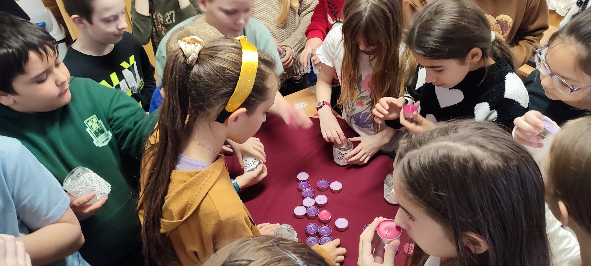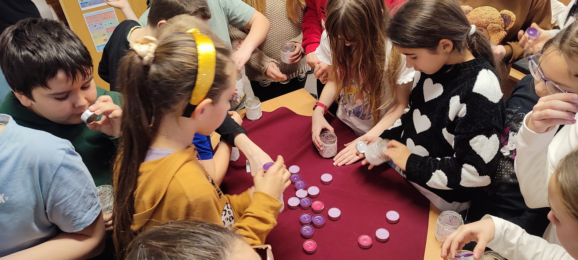 Az 5. osztályosok Mikulásra és karácsonyra készülve is meglepték egymást és családjaikat. Mikulás előtt manócskákként naponta apróságokat csempésztünk a kihúzottunk padjára, padjába, ezzel is nagy örömet okozva. Karácsonyra pedig a gyerekekkel családi ajándékként üvegmécseseket készítettünk. Szent este napján több család ia küldött a meggyújtott mécsesekről képet.