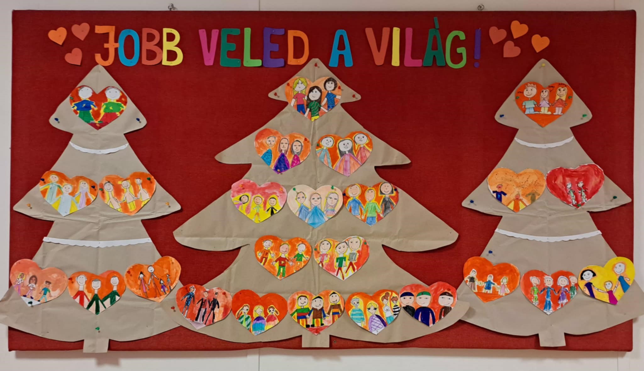 Az elkészült szívek a faliújságjára kerültek, karácsonyfa alakra elrendezve, így közös, ünnepi alkotássá váltak. A foglalkozás hozzájárult a gyermekek érzelmi biztonságának erősítéséhez, az egymás iránti elfogadás és a közösséghez tartozás érzésének elmélyítéséhez.