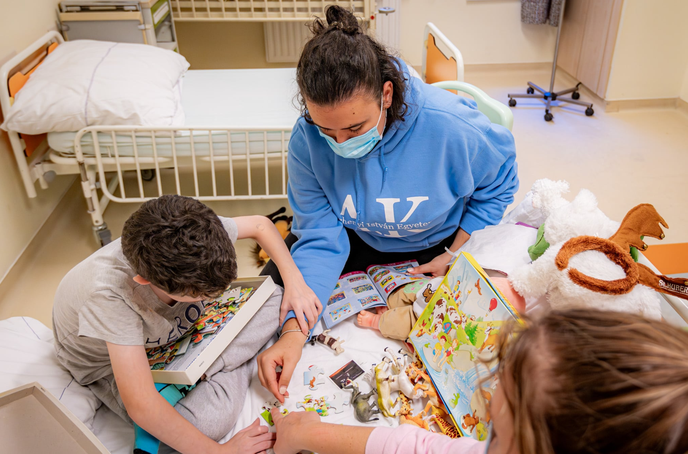 – „Megható volt látni a gyerekeket a kórházban, ugyanakkor örömmel töltött el, hogy megfelelő körülmények között, kedves és támogató közegben gyógyulhatnak. Jó érzés volt azt tapasztalni, hogy a rövid látogatásunk valóban mosolyt csalt az arcukra. Szívesen megyek hozzájuk legközelebb is egy kis beszélgetésre vagy közös játékra.” (Henye Kata, másodéves tanító szakos hallgató)