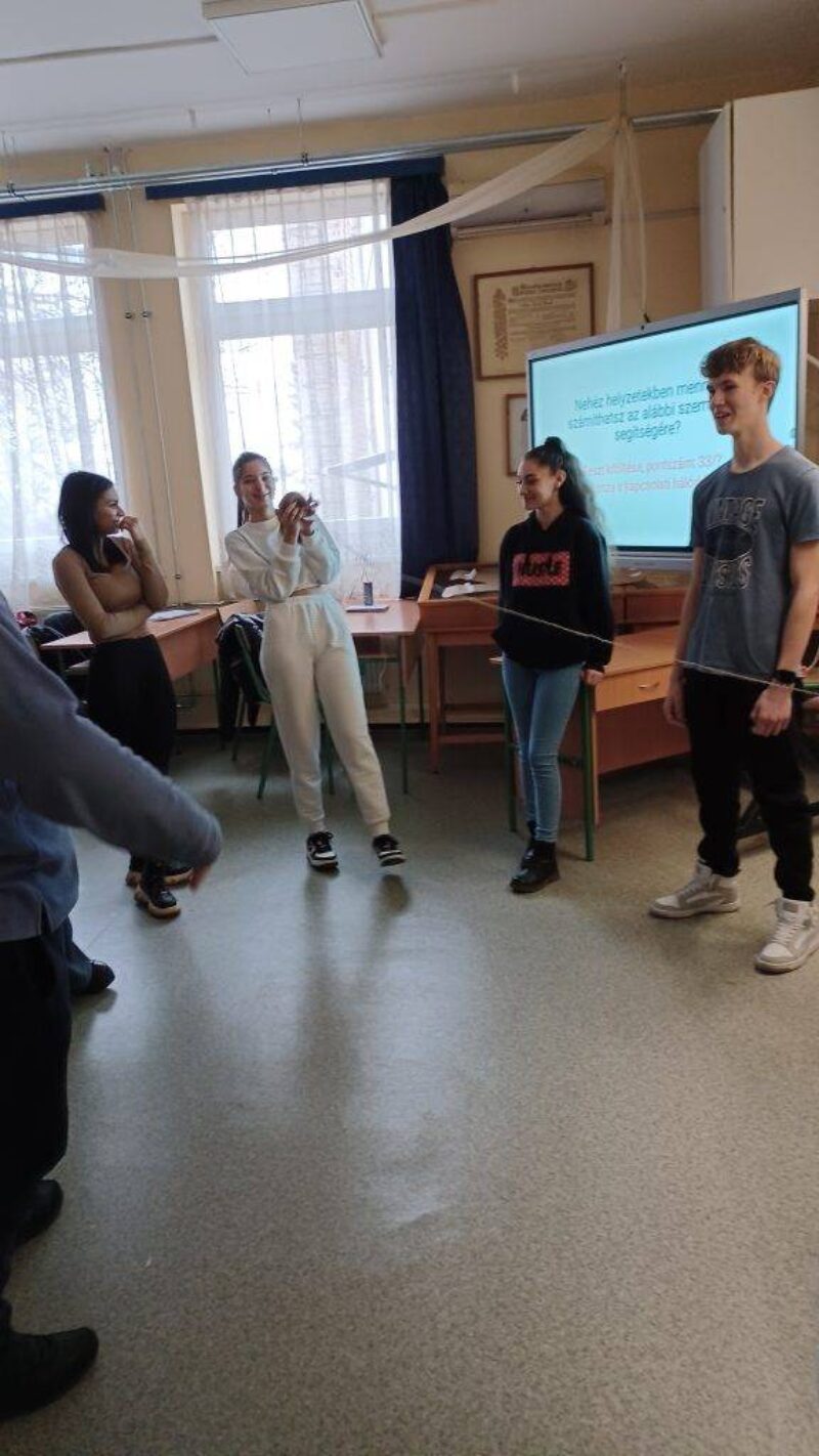 A Társas kapcsolatok témát novemberben két alkalommal dolgoztuk fel. Csoportmunkában a diákok táblázatot készítettek az optimista és a pesszimista beállítottságú ember jellemzőiről. Megcsinálták a Hunopti – tesztet, mindenki elmondta, mennyire érzik igaznak a pontszámok mutatta eredményt. Volt páros munka, filmrészlet vetítése, megbeszélése, idézetek megbeszélése; video vetítése a „hug me” – mozgalomról. Ez olyan nagy sikert aratott, hogy a diákok öleléssel búcsúztak egymástól és tőlem. Egy hét múlva az osztály tanulói- gyakorlati feladatként „szeretethálót” építettek (az osztály tagjai egymásnak dobták a fonalat, s aki dobta, mindig elmondta, mit szeret a másikban). Utána elmondták a diákok, mennyire jólestek nekik a „szerető” üzenetek. A fotókat feltöltöttem.