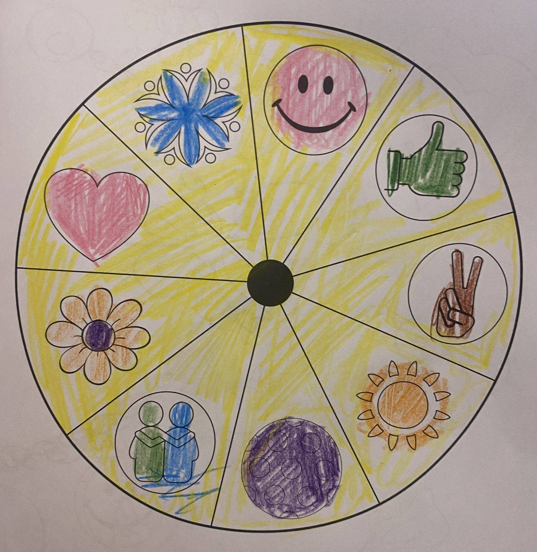 – Téma feldolgozása: Boldog erdő- Kerekerdő mese, Beszélgető kör, Boldogság kerekének színezése