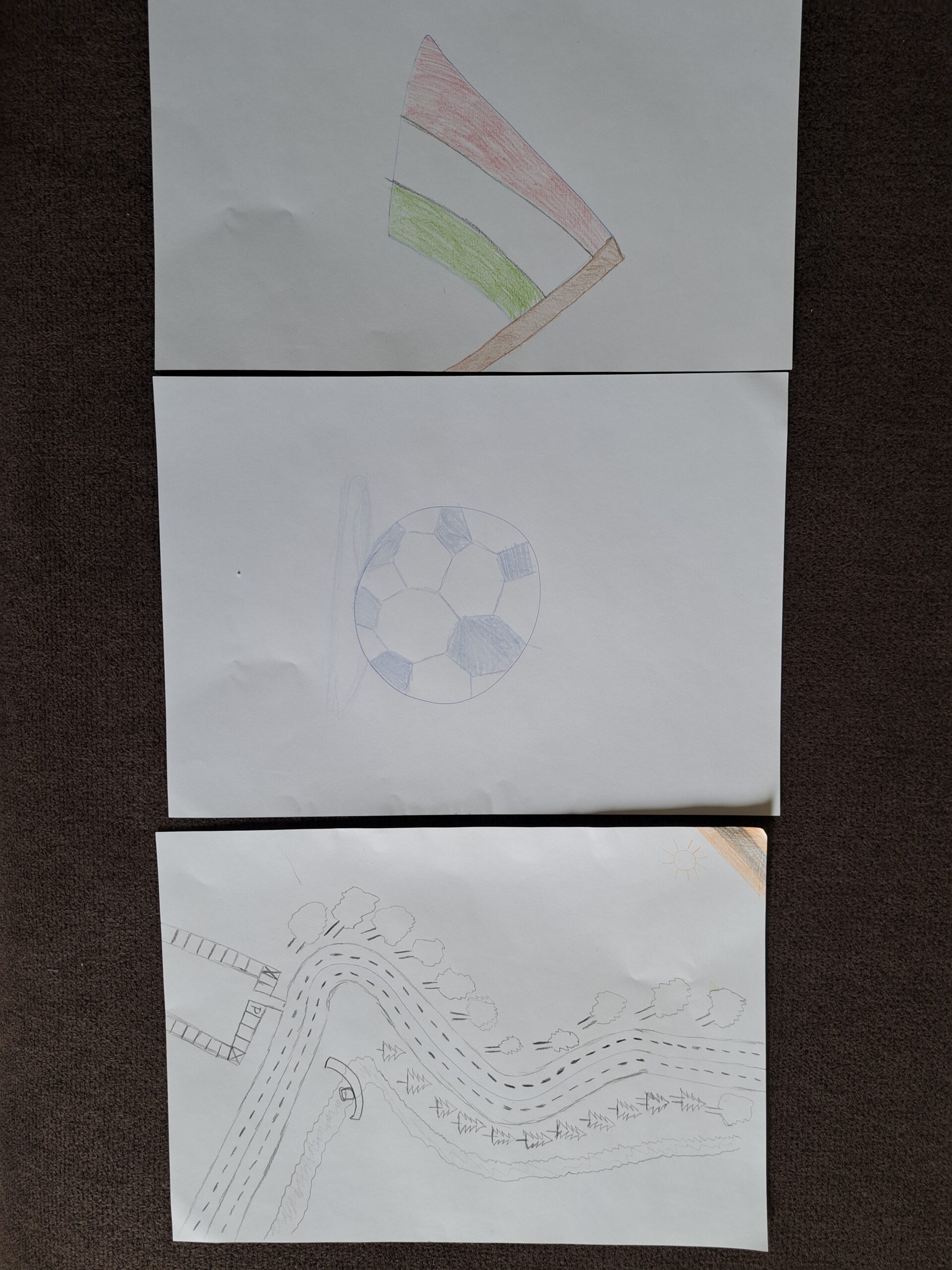 A színek, formák, kreativitás feladatnál mindenkinek egy -egy alakzatot rajzoltam, majd kiegészítették, amivé csak szerették volna. A feladat jókedvet hozott, ötletesen oldották meg.