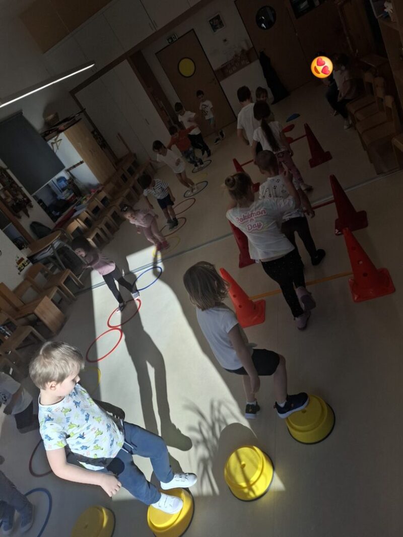 Akadálypályán haladtak, boszorkány-fogót játszottak, nyelvtörőket mondtak, színes szalagokat szedtek csipesszel…