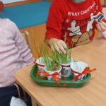 A decemberi Boldogságóra egyikén Luca-napi jóságbúzát ültettünk, amelyhez a szeretet, a figyelmesség és az egymás iránti gondoskodás élménye kapcsolódott. A gyermekek saját kis papírpoharaikat díszítették, ezekbe búzát ültettek, majd meglocsolták. A tevékenységet Luca-napi kotyolókkal és jókívánságokat megfogalmazó dalokkal tettük meghittebbé. A búza növekedését karácsonyig közösen figyeltük és minden locsolás alkalmával lehetőséget adunk arra, hogy a gyermekek megosszák egymással az aznapi kedves, segítő cselekedeteiket. A tevékenység során erősödött az empátia, a pozitív cselekedetek tudatosítása, valamint a közösséghez tartozás élménye.