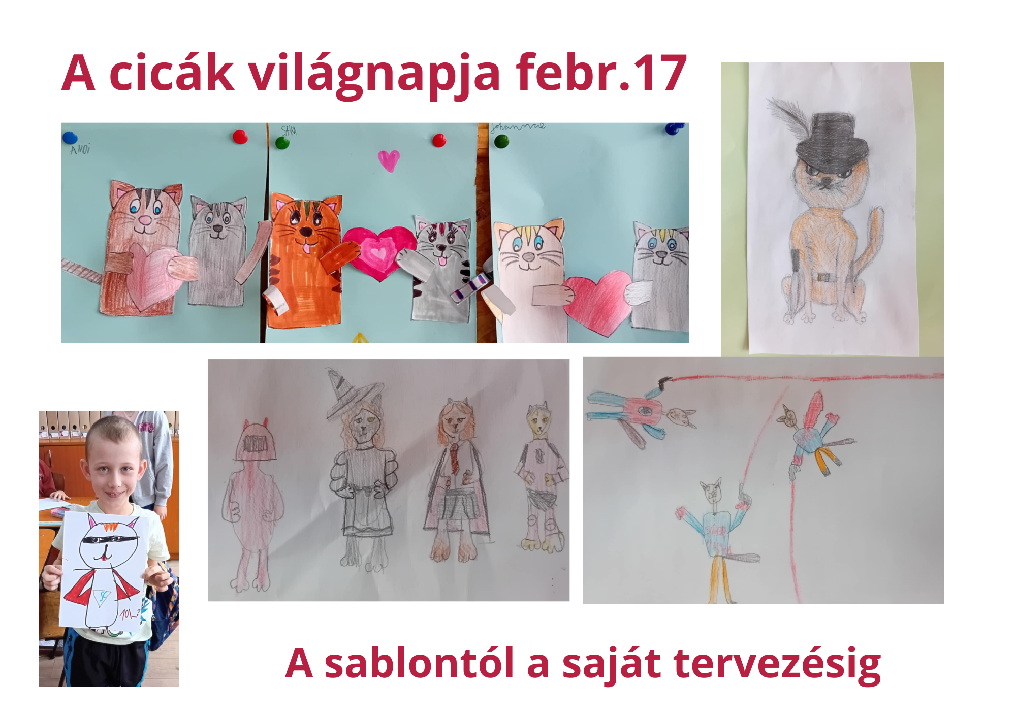 Kedden, 17-én a cicáké volt a főszerep, a sablonnal készült cicáktól eljutottunk a saját tervezésű cicás rajzokig.