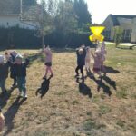 A kiscsoportos gyerekekkel az udvaron gyönyörködtünk az Isten alkotta teremtményekben (fák, virágok, égbolton :napocska, felhők)