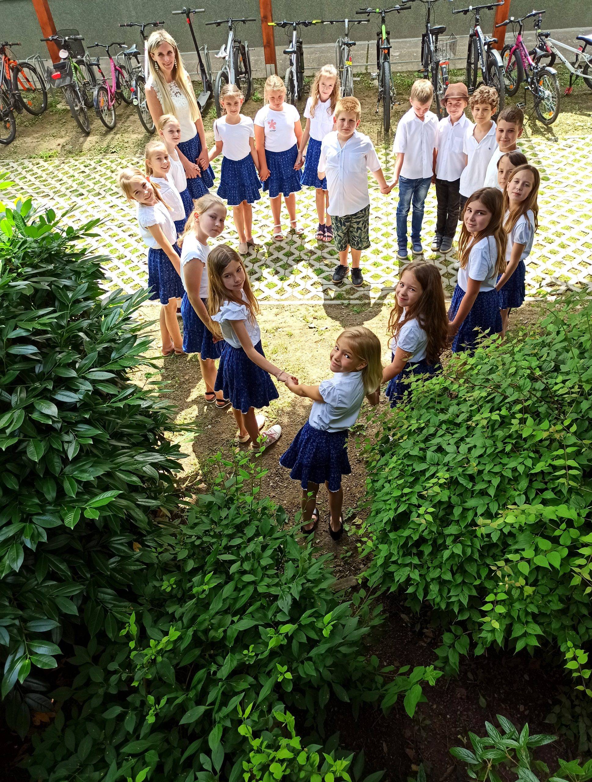 Végül át is öltöztünk, kis egyenruhánkba és boldogságfesztivált rendeztünk. Közös énekkel, dallal és egy kis sétával zártuk az idei utolsó boldogságóránkat.