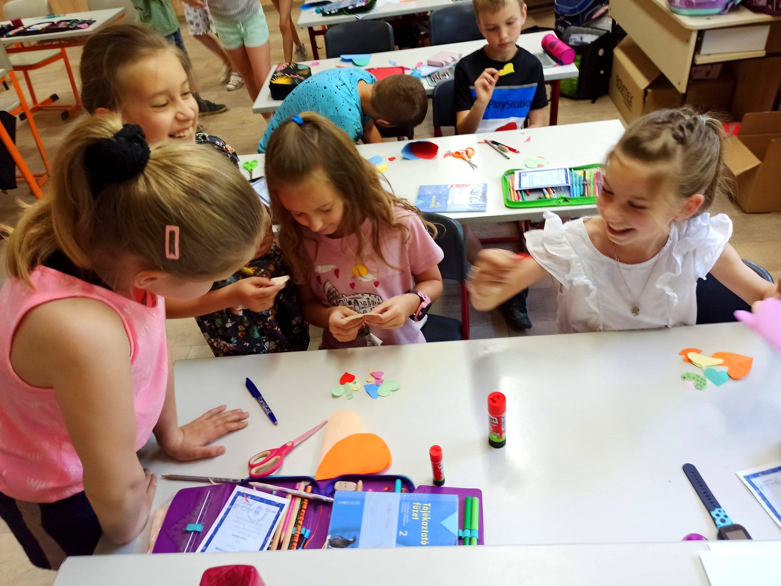 Boldogságban, szeretetben és pozitívan próbáljuk élni mindennapjaink. Színes papírból „szívpostát” = szív alakú borítékot készítettünk illetve kis alakú színes szíveket vágtunk ki, az üzenetek elkészítéséhez. Ezekre ráírtuk, ami eszünkbe jutott a másikról, pozitív tulajdonságok, kellemes emlék, közös nyaralás, szívmelengető üzenet. Az elkészült szívecskeleveleket a szívpostába dobtuk, végül mindenki el tudta olvasni mit kapott osztálytársaitól. Szerencsére a gyerekeknek rengeteg ötletük volt, így mindenkihez rengeteg pozitív üzenet érkezett. Sok gyermeknek nehézséget okozott kifejezni érzelmeit, gondolatait. Ez a tanév során rengeteget fejlődött. Szívvel, lélekkel gyártották egymásnak és nekem a kis cetliket. Lenyűgöző volt, hogy milyen bátrán fejezik ki gondolatikat egymásról. De nincs is nagyobb boldogság a megosztott örömnél, és annál, ha végre önmagad mersz lenni.