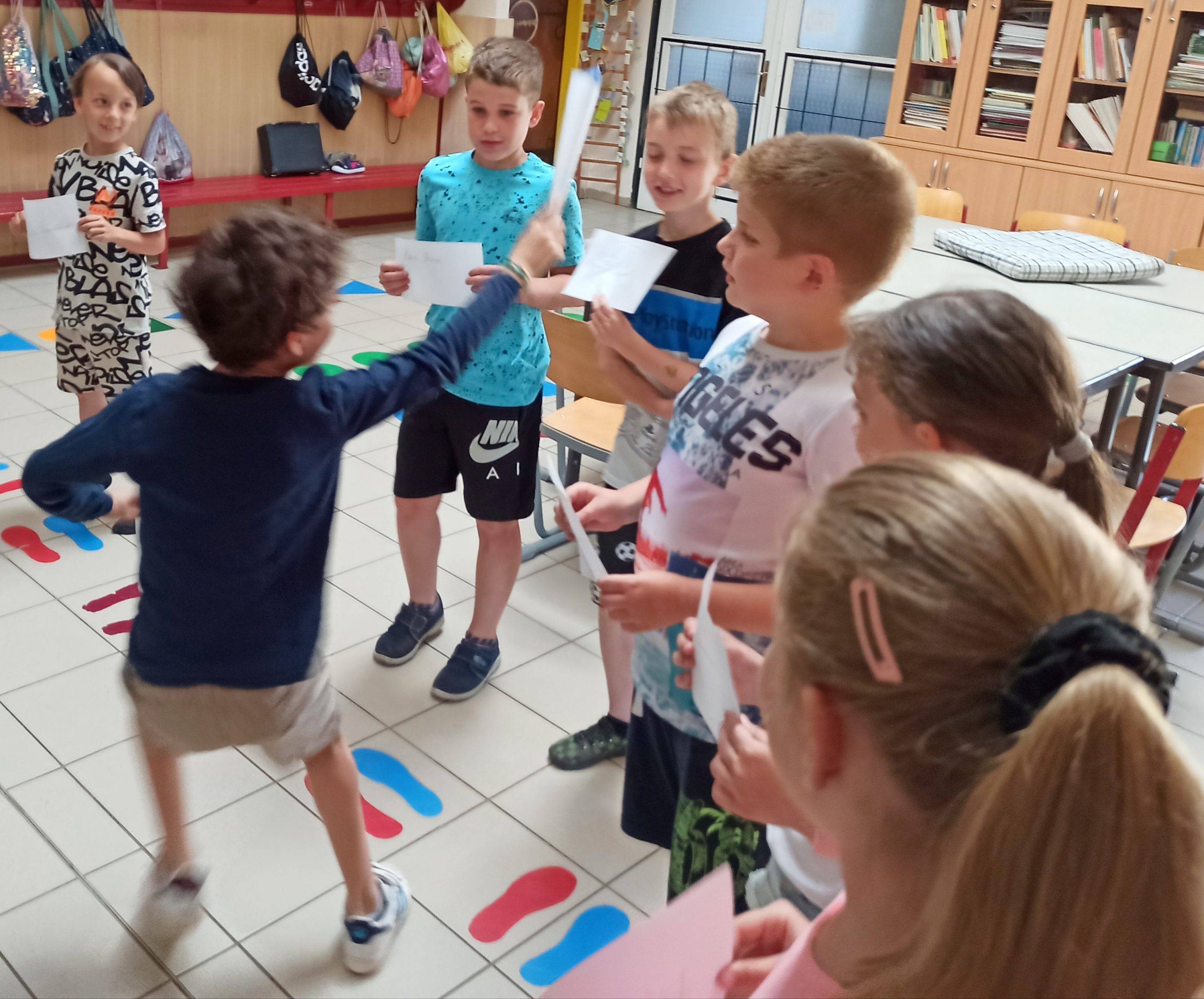 Csapkodós játék következett nyári kívánságokkal, nyári szavakkal. Mindig az elhangzott szót tartó tanulót kellett a középen állónak megpróbálni lecsapni. Nagyon élveztük ezt a játékot. Munkánk során nem csak a mozgást fejlesztettük, de kikapcsolódtunk, kieresztettük a felgyülemlett, még bennünk lévő stresszt.