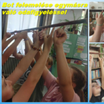 A „botemelős” feladat a közösségformálást segítette, hiszen megmutatta a gyerekeknek, hogy egymással szemben állva csak úgy tudják felemelni a botot, közös erővel, csak a mutatóujjukat használva, ha figyelnek egymásra és rendkívül körültekintően, óvatosan cselekednek. A gyakorlat többszöri próbálkozás után ugyan, de meglepően gyorsan és ügyesen sikerült, nagy élményt jelentett a gyerekek számára.