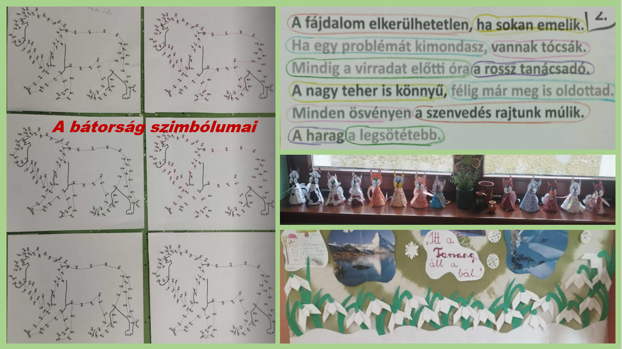 A kicsikkel a megküzdés fogalmát a kibújó hóvirágokkal próbáltam megértetni: a kis virágok mindig tudják a dolgukat, a hideg és a hó ellenére is küzdenek az életükért, kitartóan dugják ki fejüket a kemény földből és megmutatják a világnak, hogy mindenre képesek.