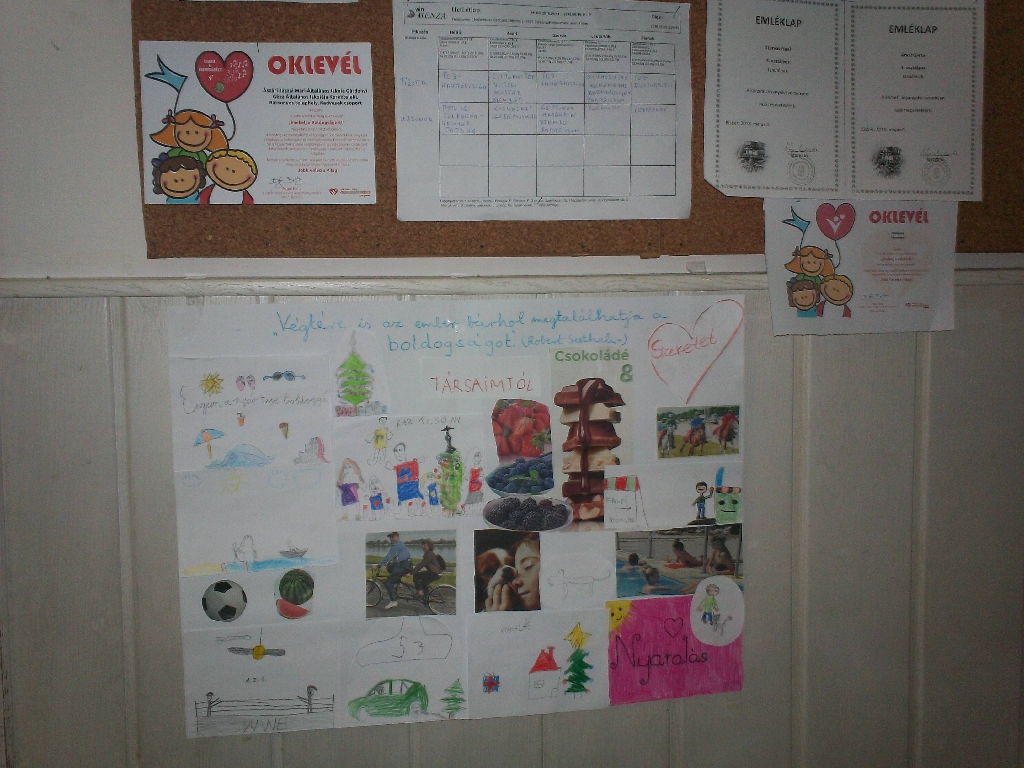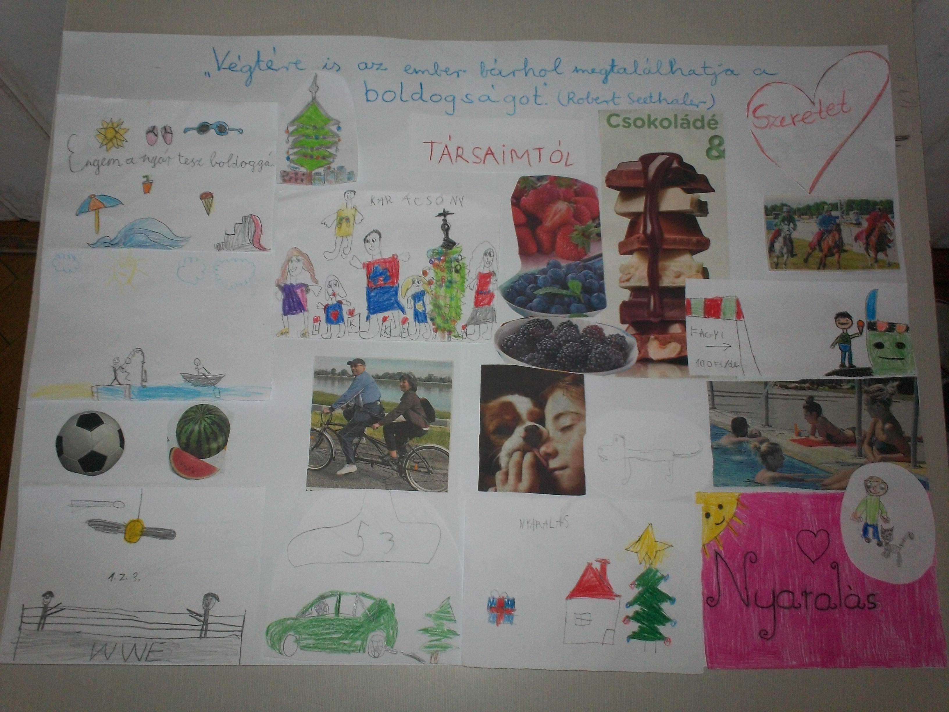Elérkeztünk az utolsó napokhoz, amikor megrajzoltuk, hogy milyen apró dolgok tehetnek bennünket boldoggá. Nagyon jó kirándulást és gyalogtúrát is tettünk ebben a hónapban. Ezek is boldoggá és összetartóbbá tettek bennünket. Érdekes volt az a sok apró dolog, amit még a gyerekek elmondtak a boldogságról. a boldogságórákon mindannyian jól érezték magukat és ezeknek az óráknak a hangulata végigkísérte a többi tanórát is.Köszönjük a sok segítséget és támogatást a boldogságórák háttérben dolgozóinak! Áldás rájuk és további munkájukra! Ugyanígy Prof. Dr. Bagdy Emőke és Bagdi Bella életére! Hálásan köszönjük!