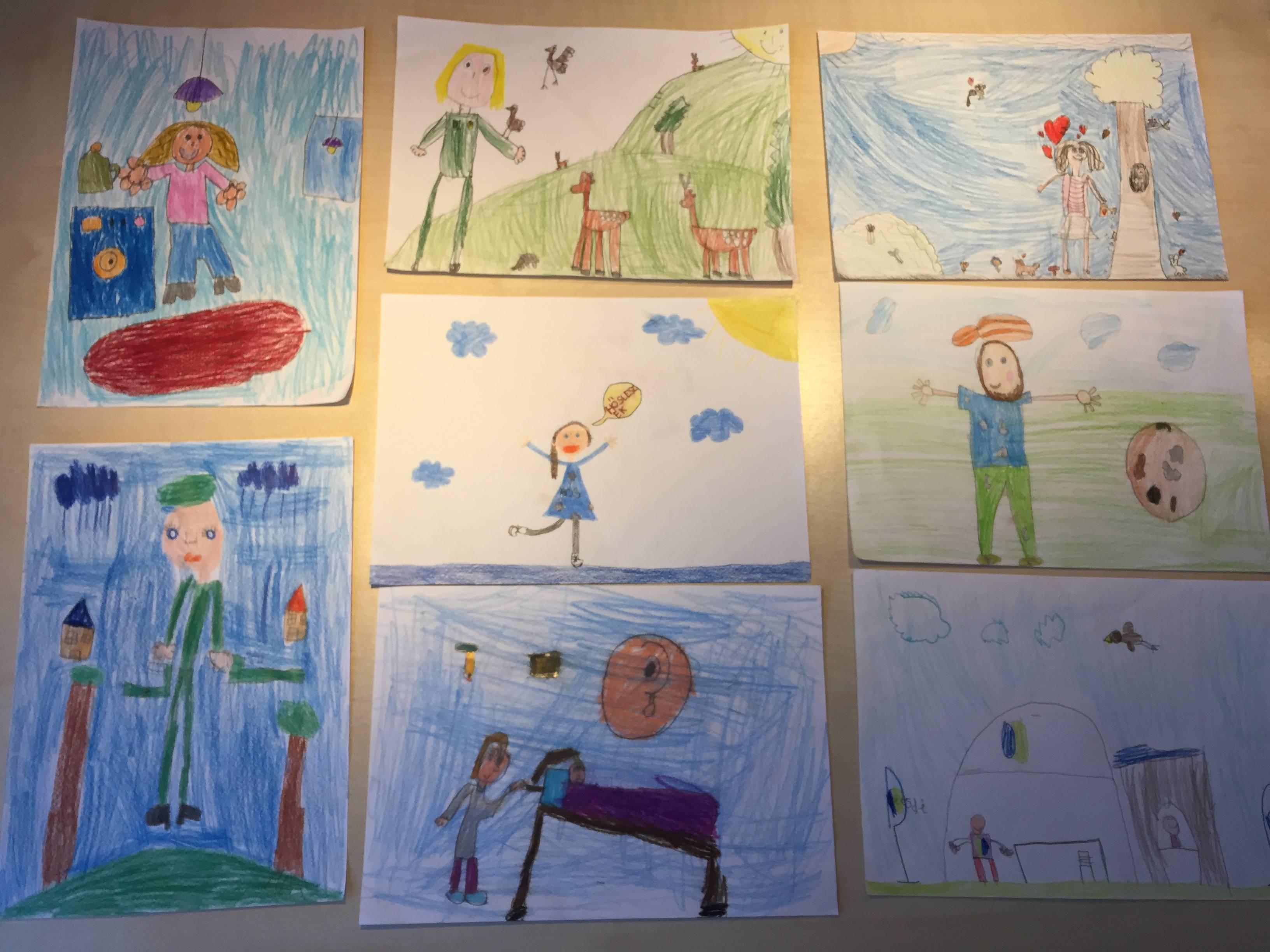 Elsőként arról beszélgettünk, hogy ki hogyan küzd meg az előtte álló akadályokkal, majd arról kik azok a hősök, kiket nevezhetünk hősöknek, hogyan is nézhetnek ki. Volt szó a hétköznapi hősökről (például, rendőrök, katonák, orvosok, állatmentők…..) és arról, hogy ők is lehetnek hősök tetteikkel, cselekedeteikkel. A gyerekek szívesen fogadták és dolgozták fel ezt a témát. Volt aki saját magát jelenítette meg hősként, volt aki a szüleit, volt aki barátot és volt aki valamilyen számára fontos foglalkozásban látta hősként magát vagy más embereket.