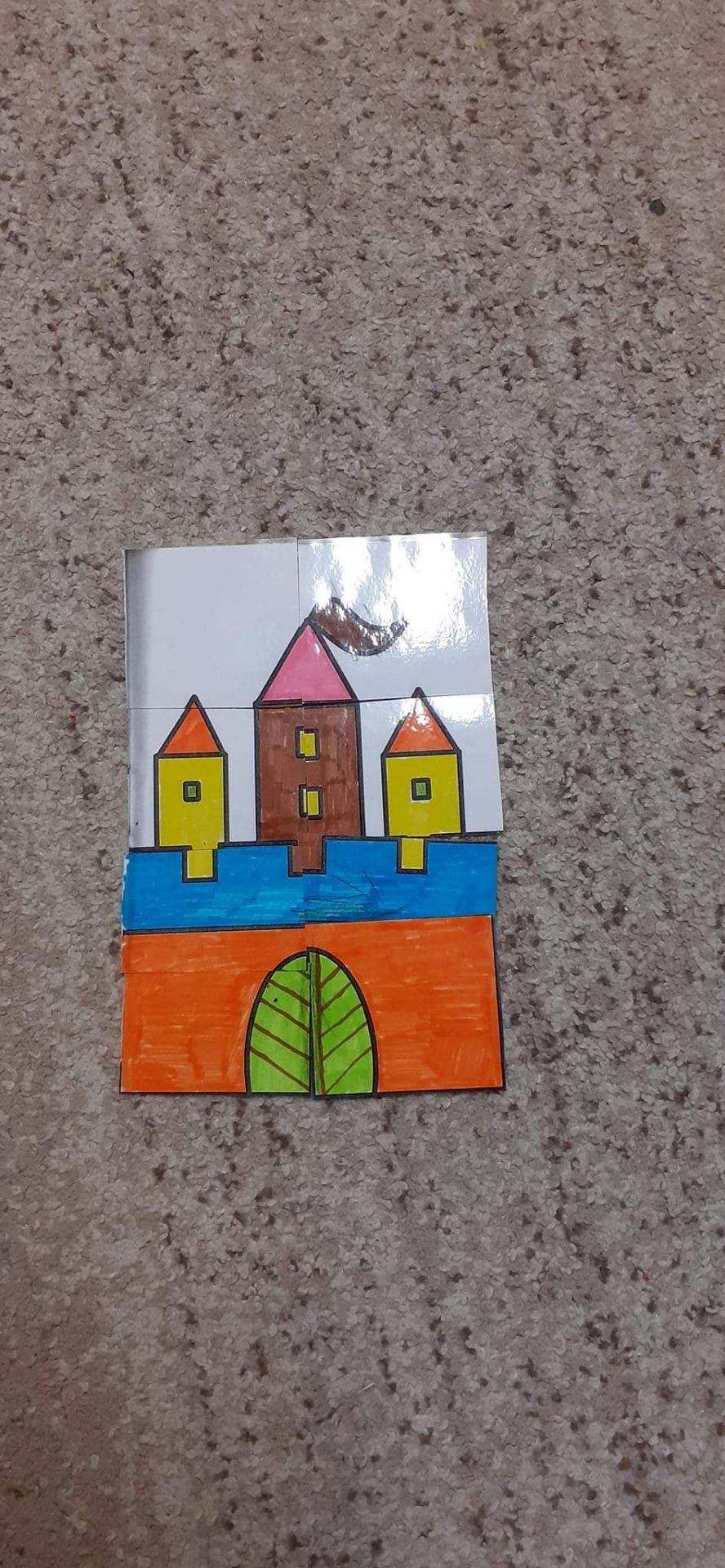 A mese meghallgatasa után mozgasos játek majd puzzle keresés vette kezdetét. A darabok megtalálasa es összeillesztesevel elértuk a célunkat- összeállt a kép. Boldogvar tárult elénk. Nagyon jó kis alapot adott ez a torténet hiszen utána felhasználták más játéktevékenység során is.