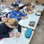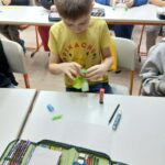 Csoportos kreatív feladat következett ezután. „Támogató láncot” készítettek. Mindenki kapott egy színes papírcsíkot, ráírta, hogy mivel tud segíteni másoknak. A papírcsíkokat lánccá fűzték össze, amely az osztályunkban kapott helyet.