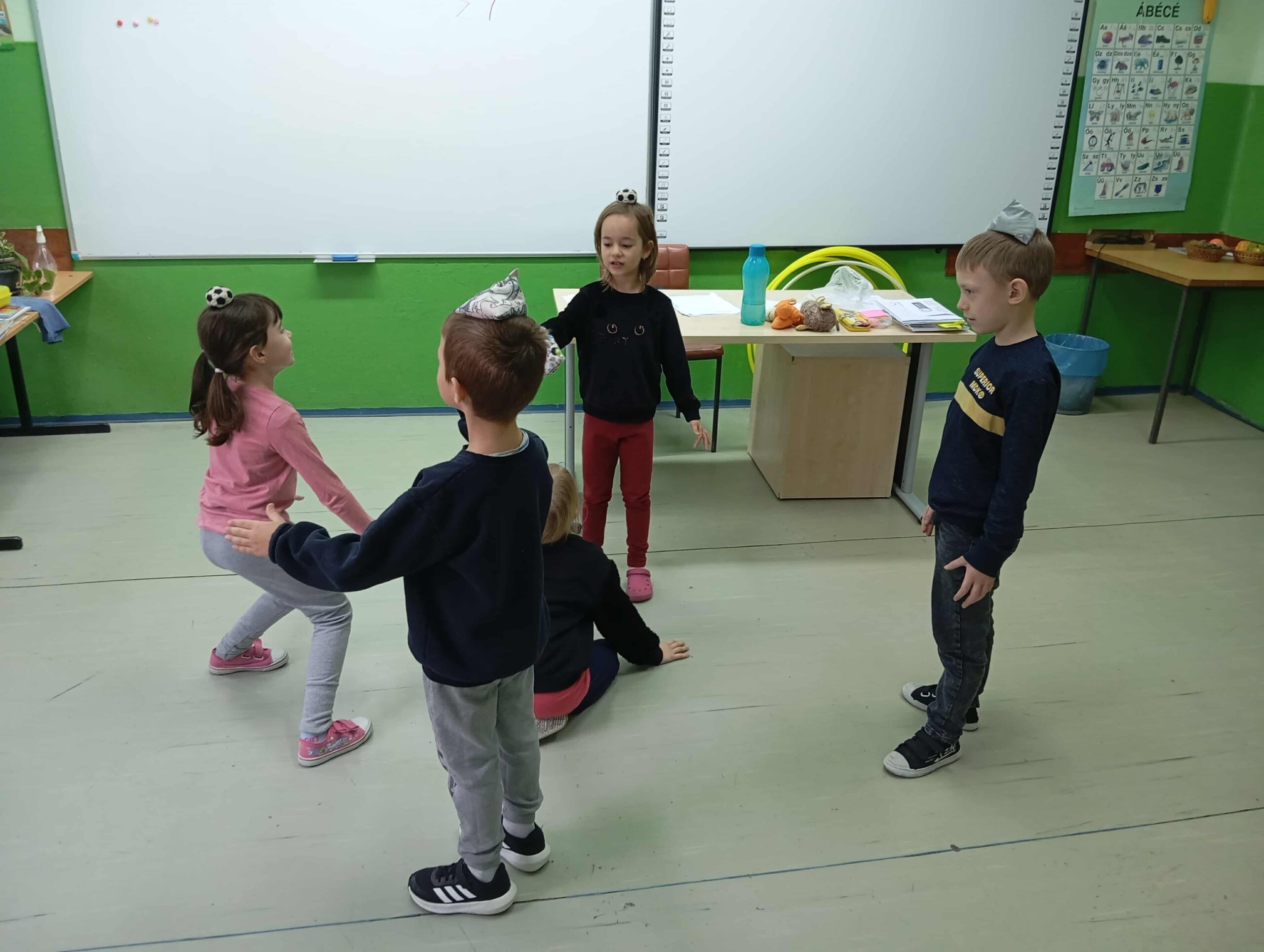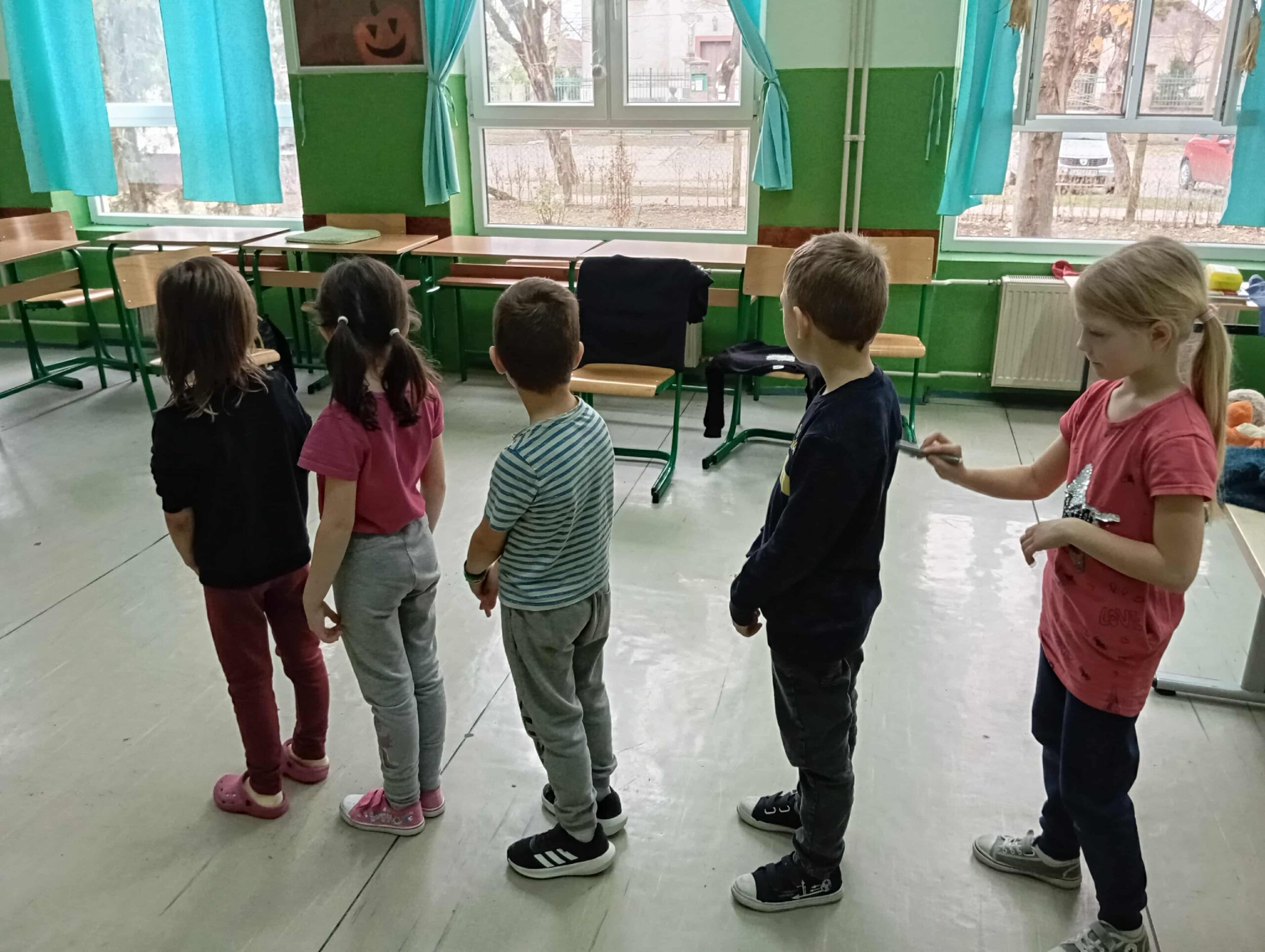 – Távíróoszlop játék – diákok egymás mögött állnak, jel-forma-jel rajzolása hát közepére, továbbítva, utolsó diáknak le kell rajzolni táblára, mit is rajzolhattak eddig diáktársai.