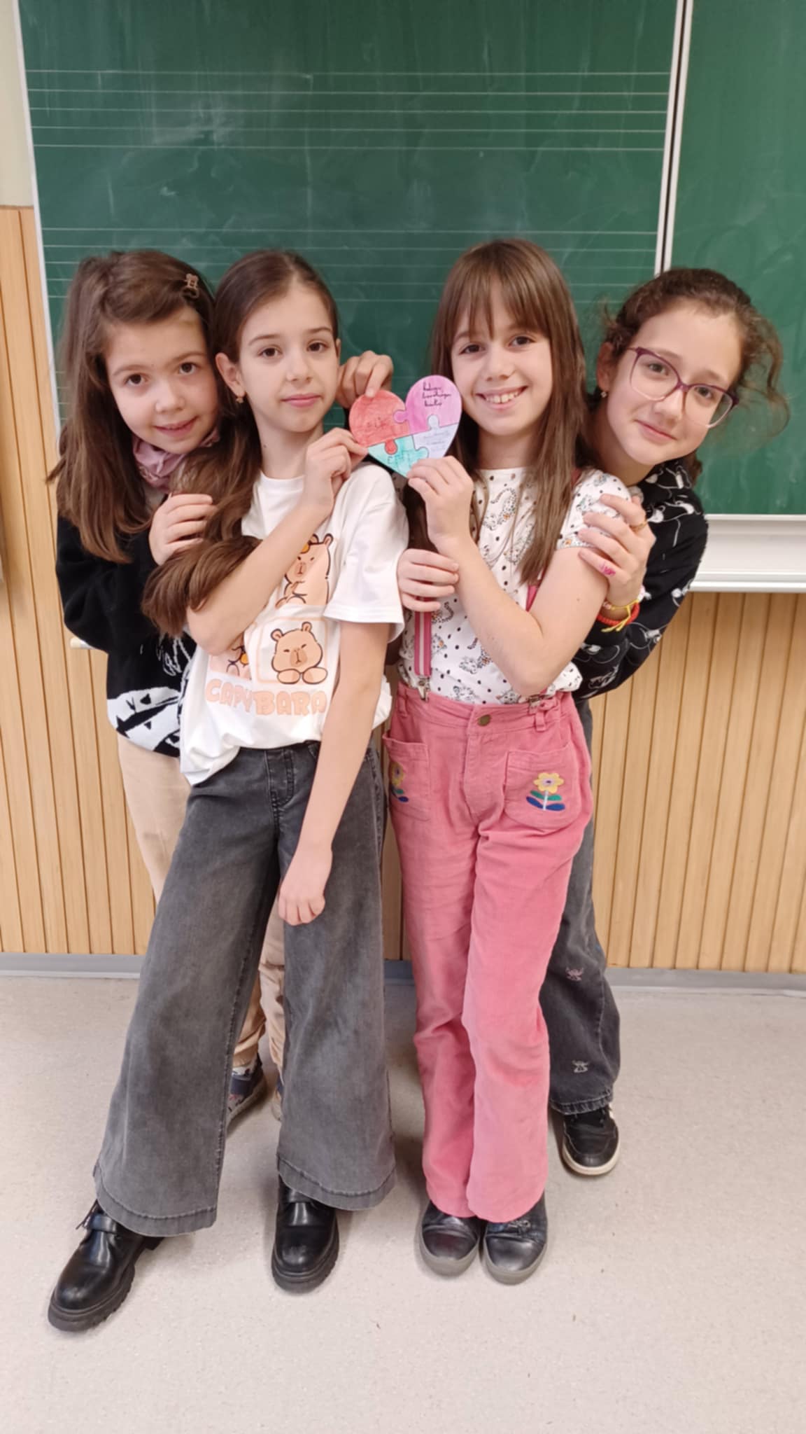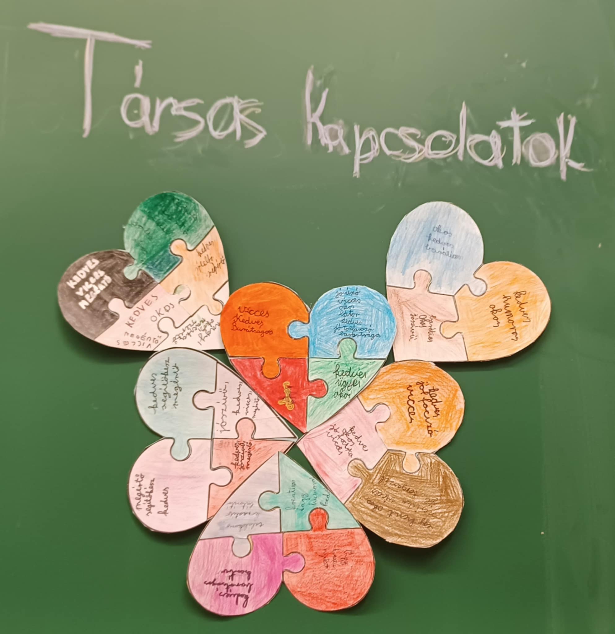 A tolerancia napja alkalmából elkészítettük a puzzle darabokból álló szíveket. Jelképezte, hogy mennyire sokszínűek vagyunk. Minden ember más és más, mégis az osztályban közös dolgokért dobog a szívünk.