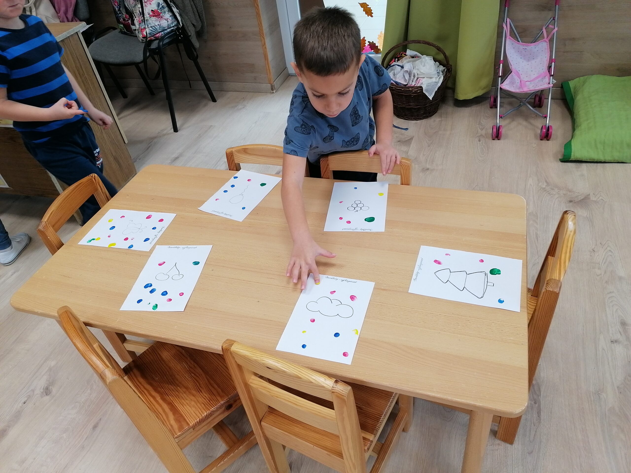 A hónapban a támogató kapcsolatokról volt szó. Az ajánlás alapján többször is meghallgattuk Bagdi Bella Ha boldog vagy című dalát, és többször táncoltunk is rá. Körben ülve egy héten legalább egyszer eljátszottuk a kis barátom hogy vagy játékot, mellyel erőstítettem a társas kapcsolatokat. A legjobban a barátság ujjlenyomat készítés tetszett nekik, ezt postás játékba fűzve játszottuk.