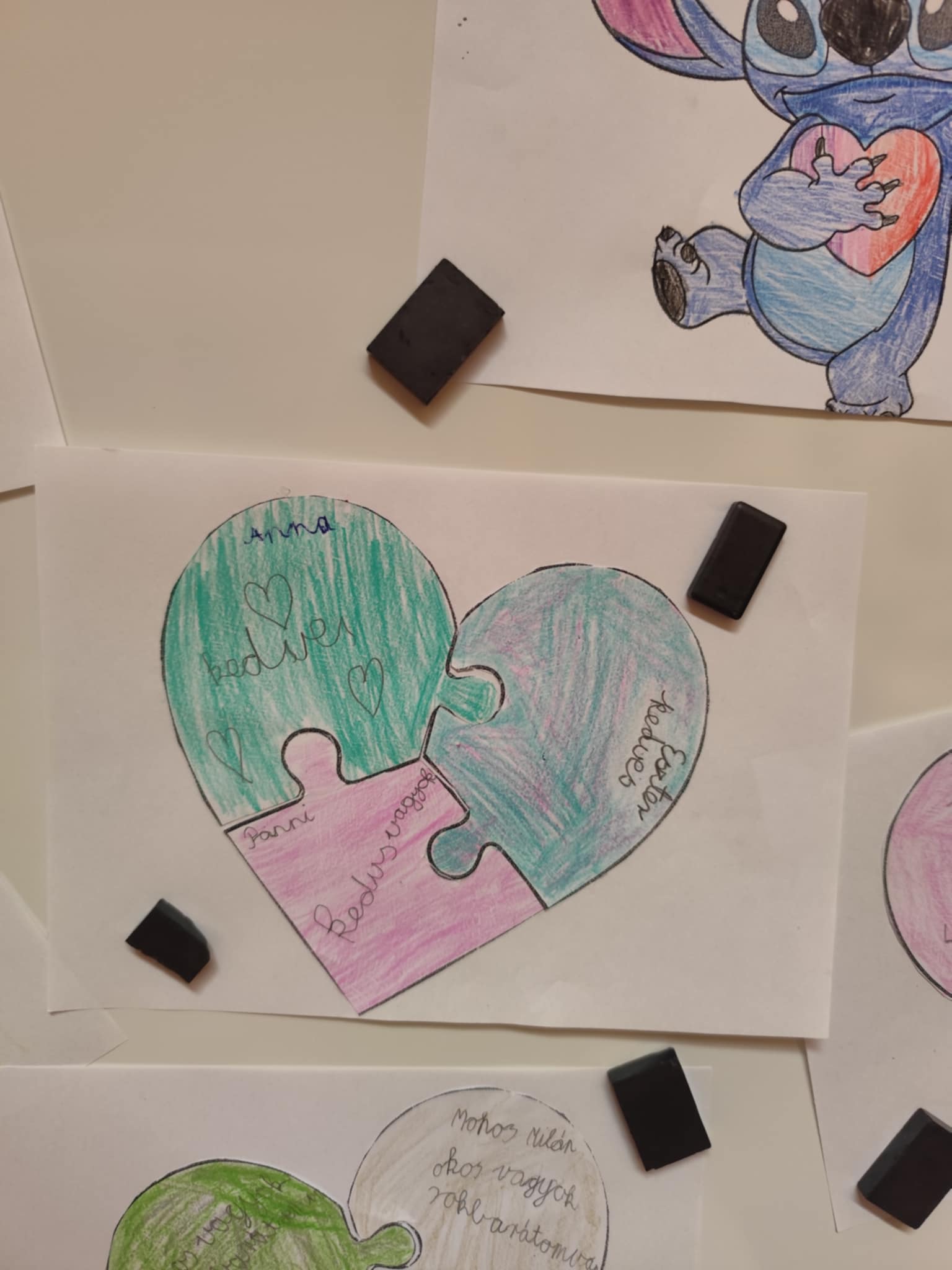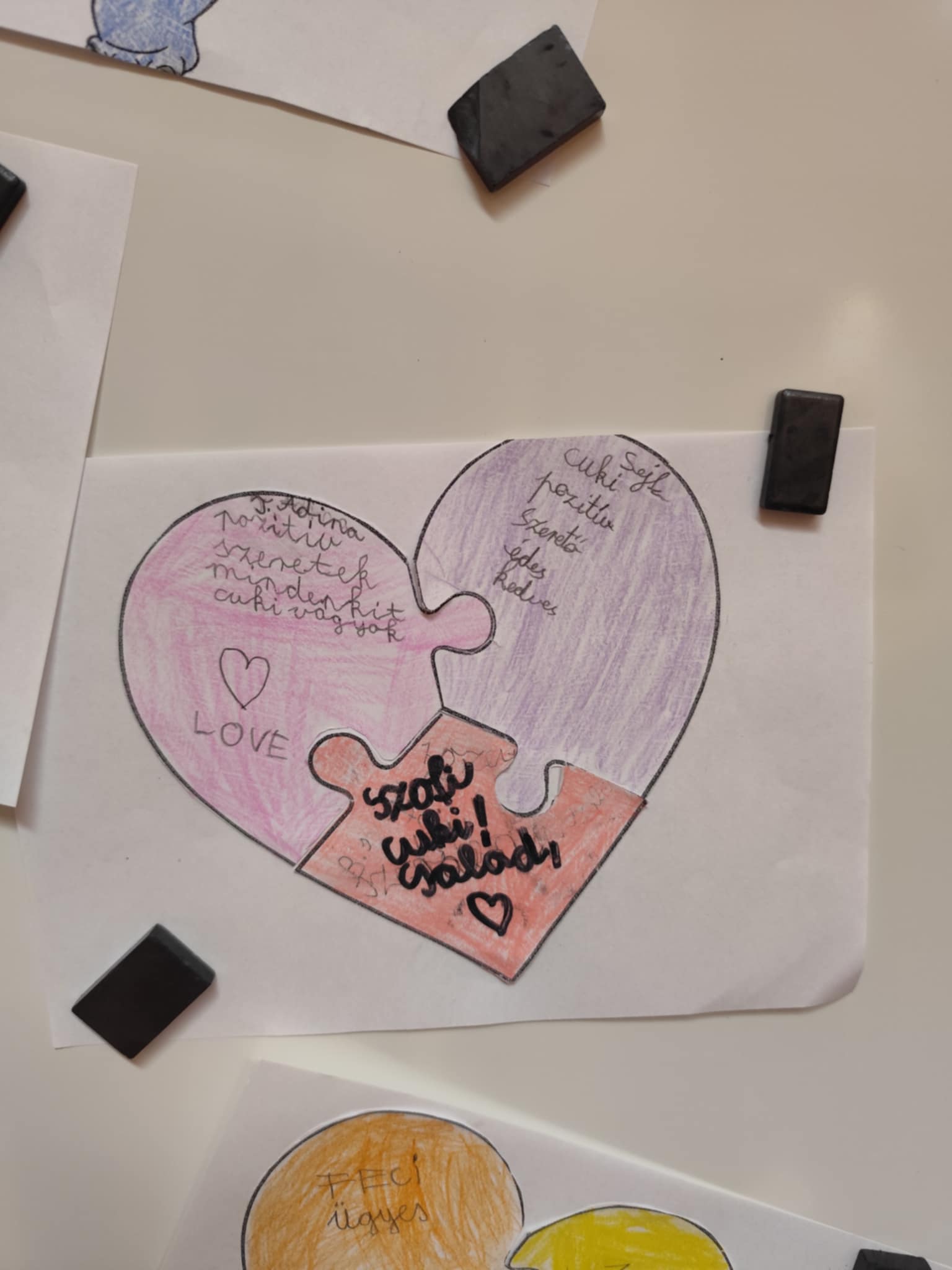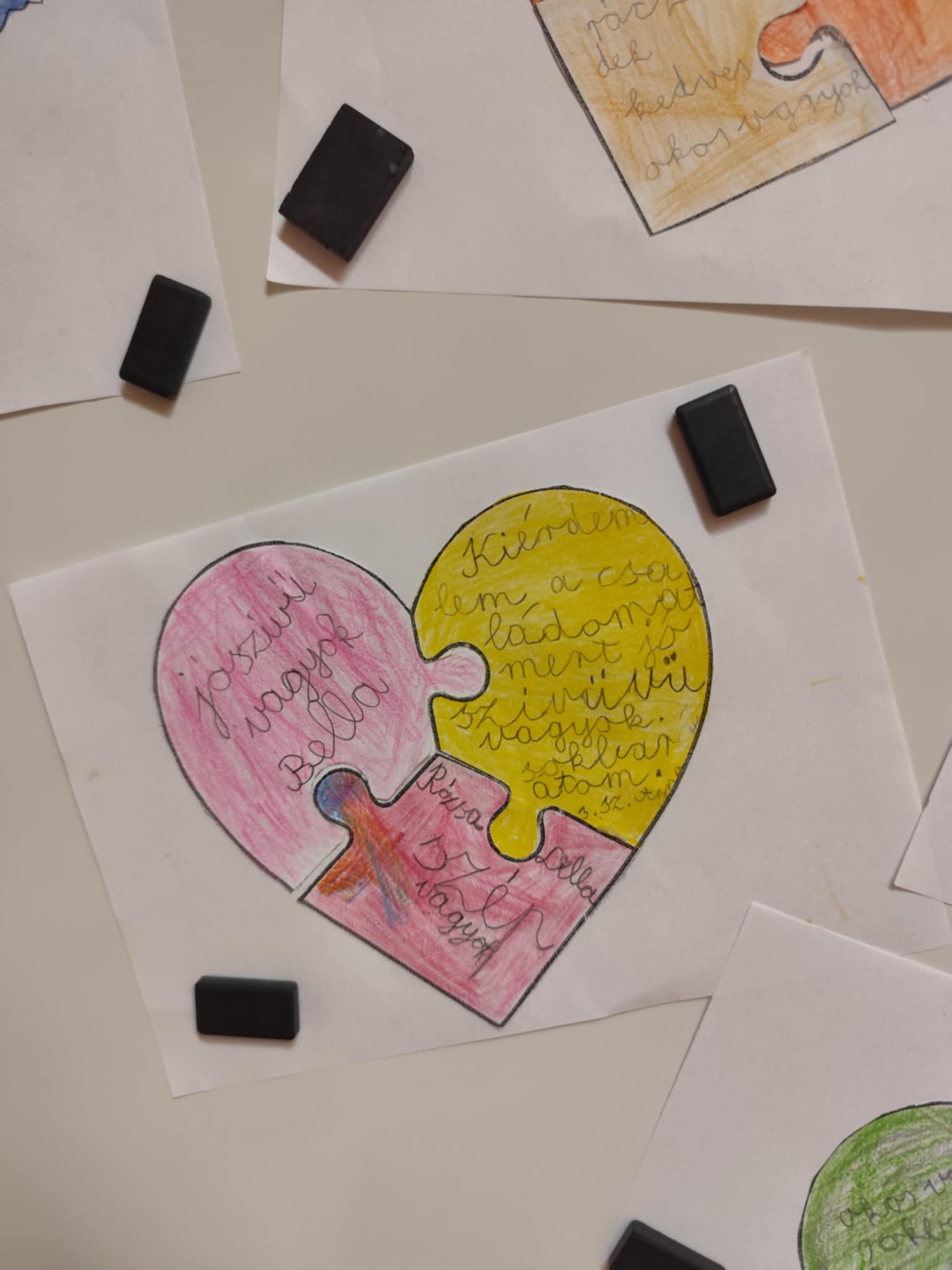 A Tolerancia napján elkészítettük az osztály puzzle-szívecskéit, és rácsodálkoztunk arra, mennyire különbözőek is vagyunk és mégis milyen jól kiegészítjük egymást.