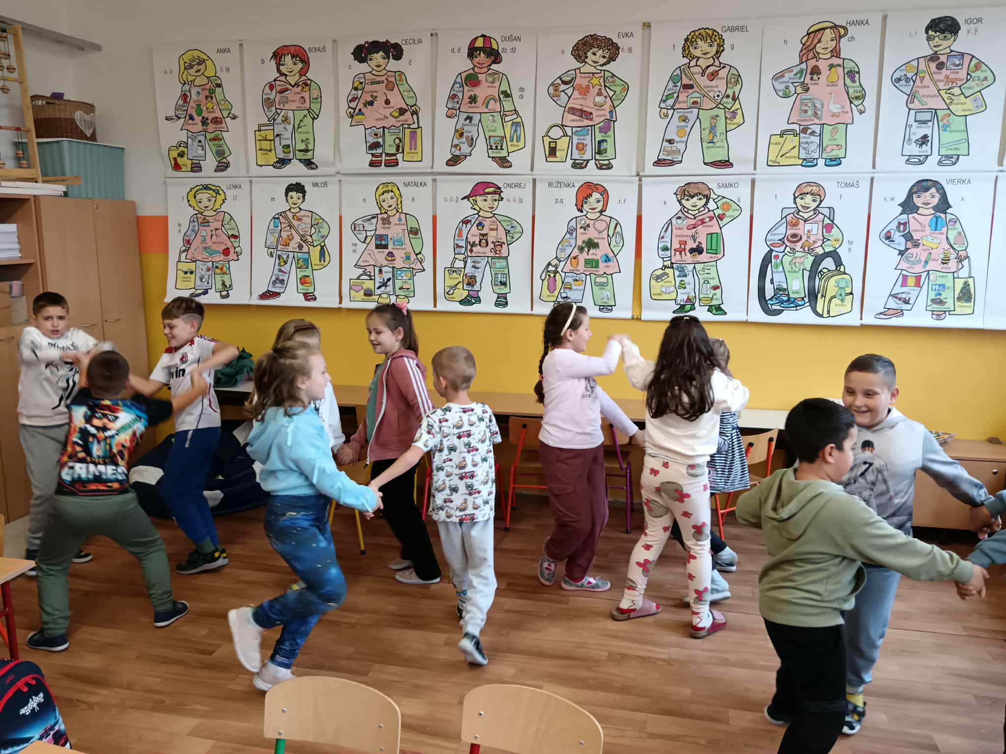„Ha boldog vagy…” Ez a dal mindig felpezsdíti csapatunkat. Mielőtt azonban átadtuk volna magunkat a dallamoknak, az önfeledt mozgásnak, játszottunk. Kipróbáltuk, hogy milyen távíróoszlopok lennénk, majd pedig egy hosszú csendes egymásra figyeléssel és egy mondattal fejeztük ki egymásnak azt, hogy figyelünk egymásra, és örülünk egymásnak. Jóleső, mosolygós foglalkozás volt.