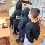 A társas kapcsolatok, barátságok folyamatos törődéssel tarthatók karban. A problémák is megoldhatók közös akarattal, kedvességgel. Az első osztályosokhoz közelebb álltak az óvodás korcsoport feladatai, így játszottuk a Kis barátom, hogy vagy?, Távíróoszlop játékot. Barátság-ujjlenyomatokat is készítettek.