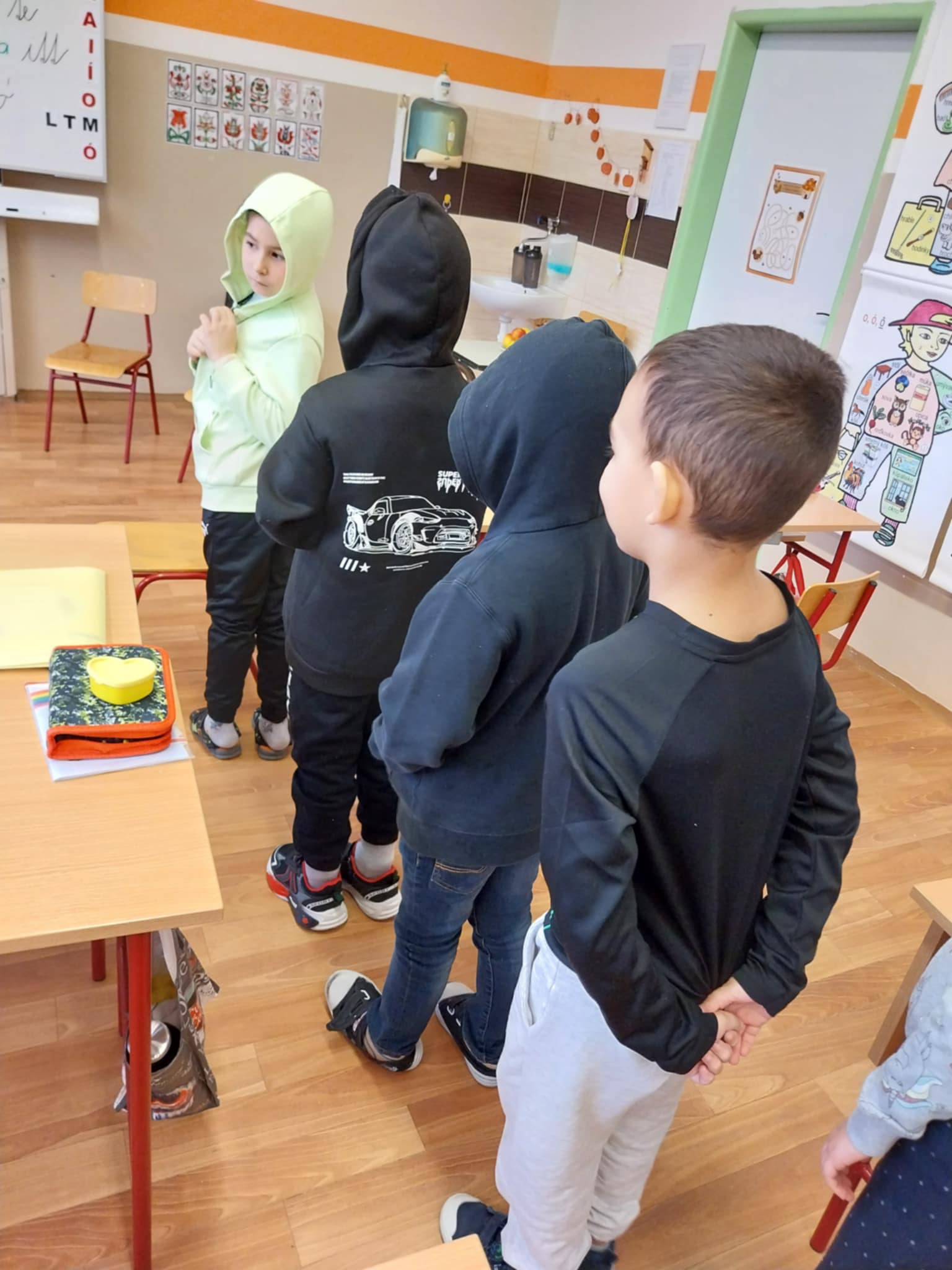 A társas kapcsolatok, barátságok folyamatos törődéssel tarthatók karban. A problémák is megoldhatók közös akarattal, kedvességgel. Az első osztályosokhoz közelebb álltak az óvodás korcsoport feladatai, így játszottuk a Kis barátom, hogy vagy?, Távíróoszlop játékot. Barátság-ujjlenyomatokat is készítettek.