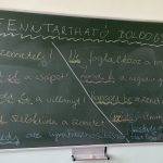 A „fenntartható boldogság” kifejezés elemzéseként, diákjaink először összegyűjtöttek egymásnak (és maguknak) 5 tanácsot azzal kapcsolatban, hogy mit tehetnének egy fenntarthatóbb jövő, és a környezetvédelem érdekében. Ezután a kapott mondatok első szavával (legtöbbször igéjével) fogalmaztak meg további 5 tanácsot, hogy mit tehetnének minden nap azért, hogy boldogabbak legyenek. A javaslatok összegyűjtésének végeztével többször is elismételték együtt hangosan az egymás mellett lévő tanácsokat, hogy ezzel is elmélyítsék törekvéseiket a fenntartható boldogság érdekében. A diákok rendkívül élvezték a folyamatot, kellemes tanévzáró foglalkozás volt ez számukra.