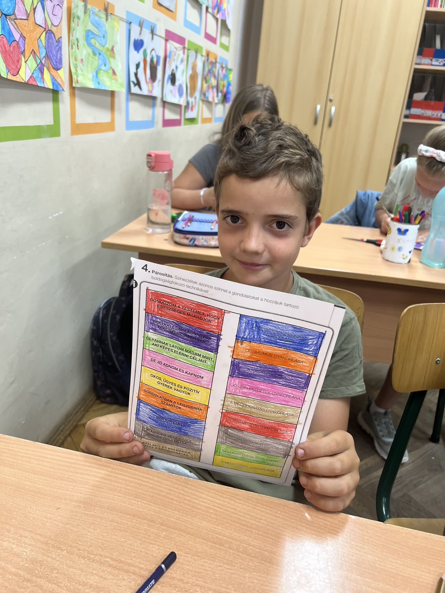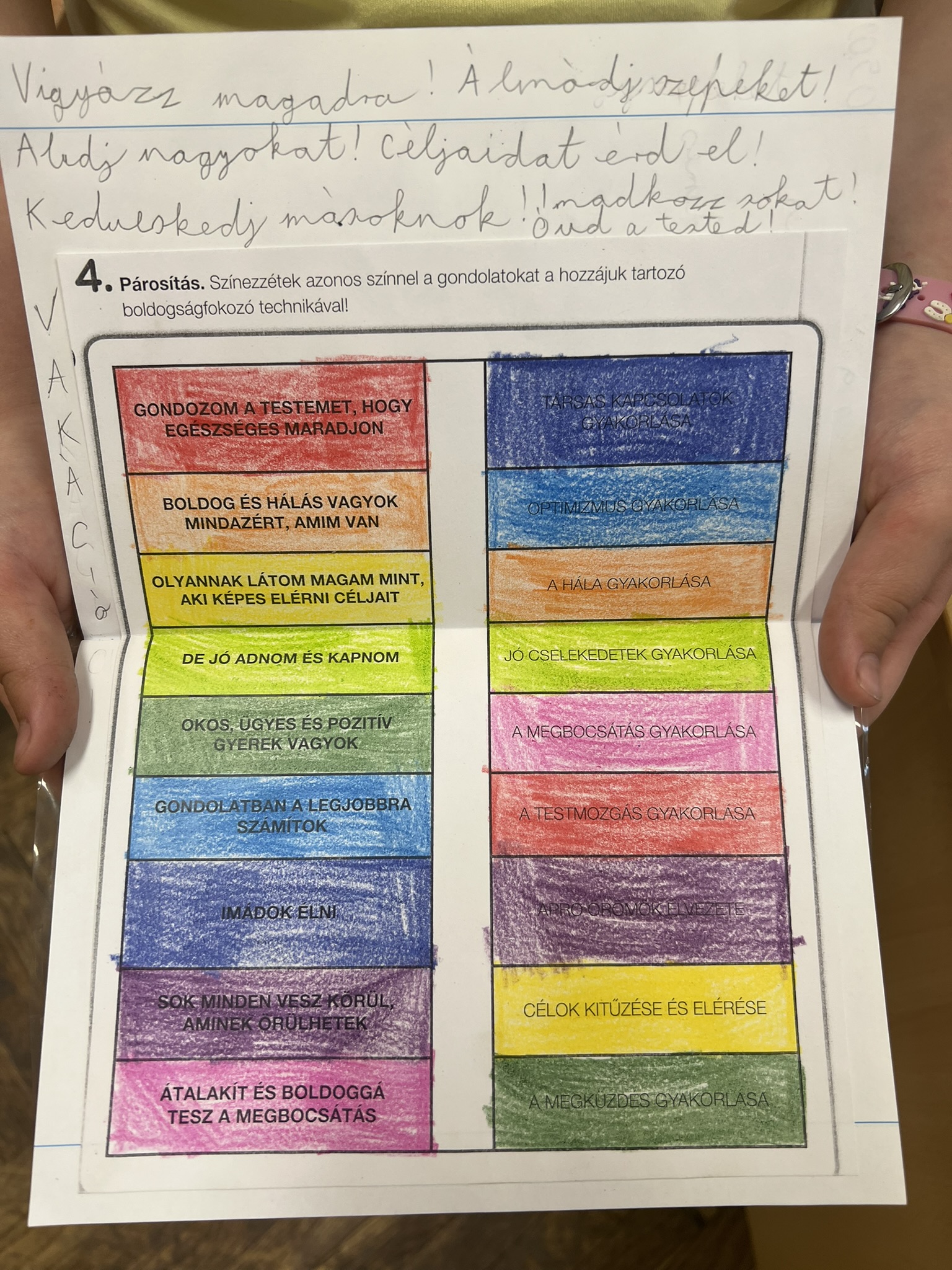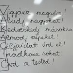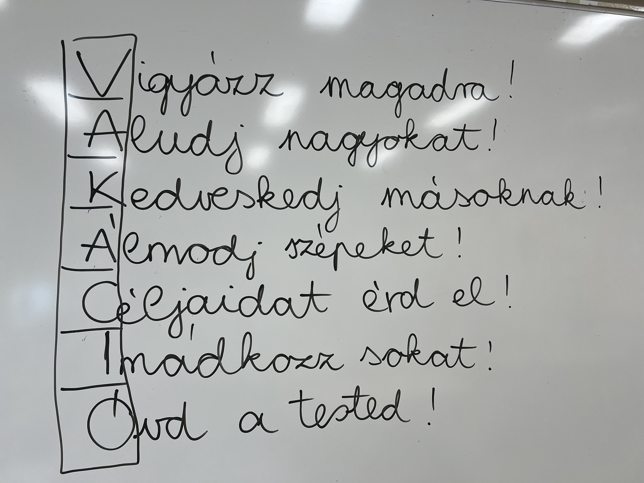 A tanulókkal a tanévben előforduló 10 témát elevenítettük fel, majd a VAKÁCIÓ szó segítségével jókívánságokat fogalmaztunk meg egymásnak a nyári szünetre.