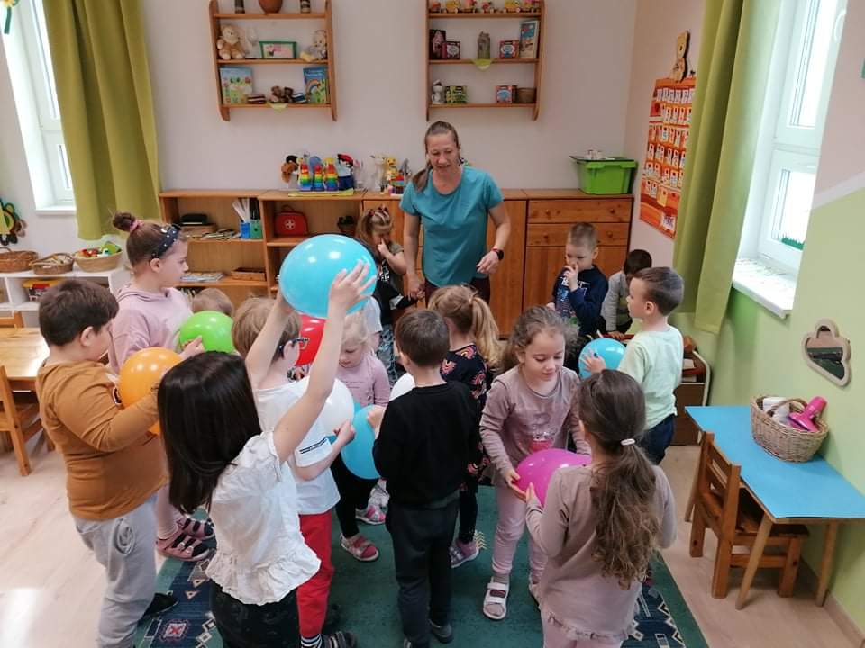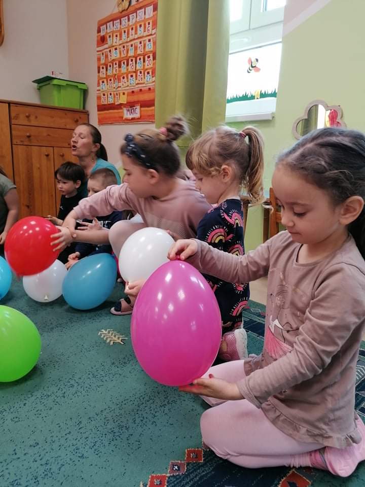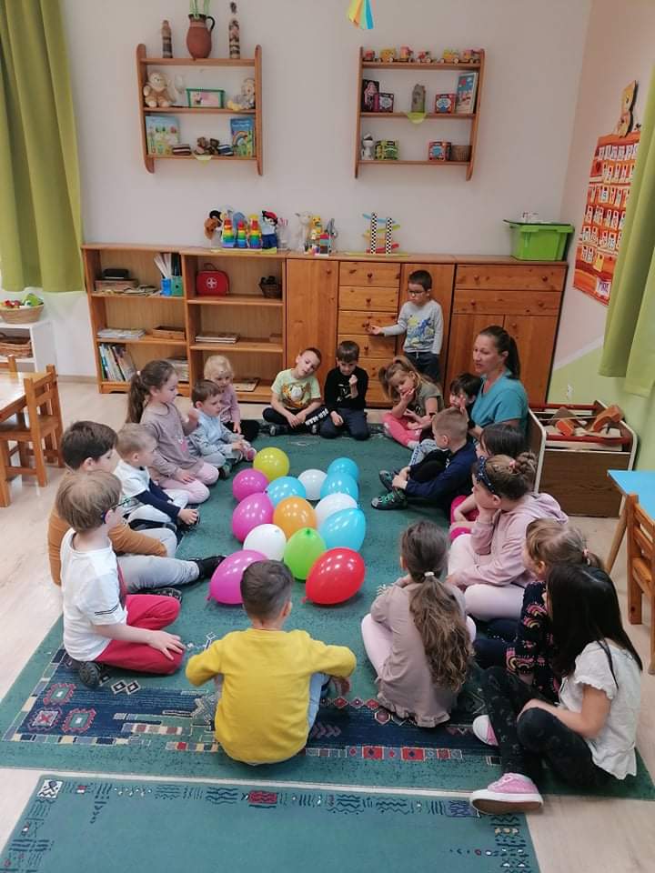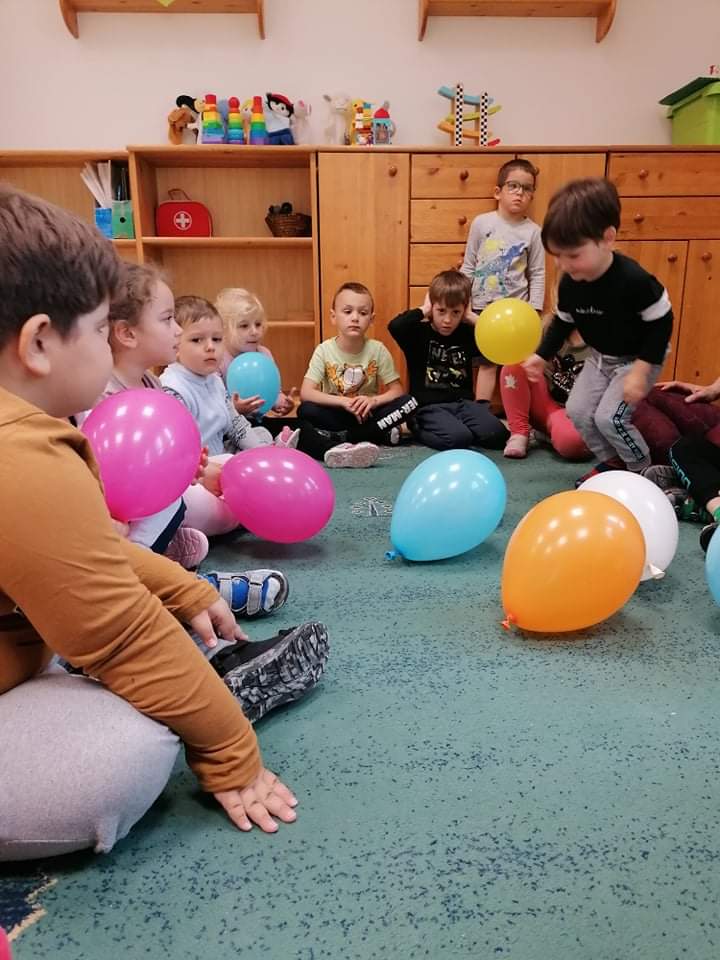 Érzékszerveinkkel kötöttük egyve ezt a feladatot. Tálakba öntöttünk lisztet, rizst, sárgaborsót, gyöngyöket, nagy fagyöngyöt, vizet, tésztát. Megvizsgáltuk, hogy mit látunk, színe, állaga milyen, mindenki megtapinthatta. Közösen lufikba töltöttük, letakarva próbáltuk párosítani. Játék után felfujtuk a lufikat és meghalgattuk milyen hangot adnak ki. Zenekart alakítottunk, hallk, hangos gyakorlásával. Szinte minden érzékszervünket hadználtuk.