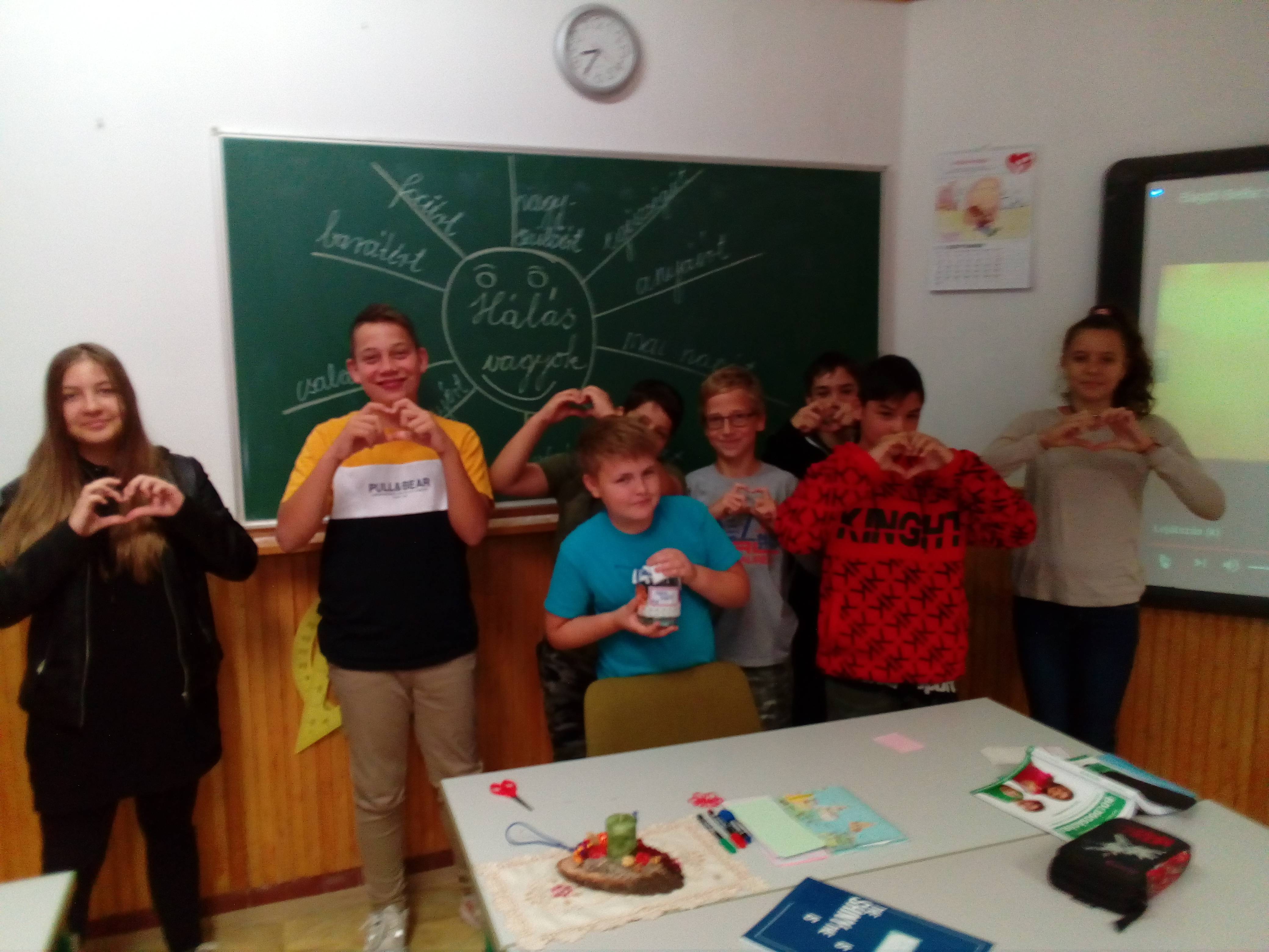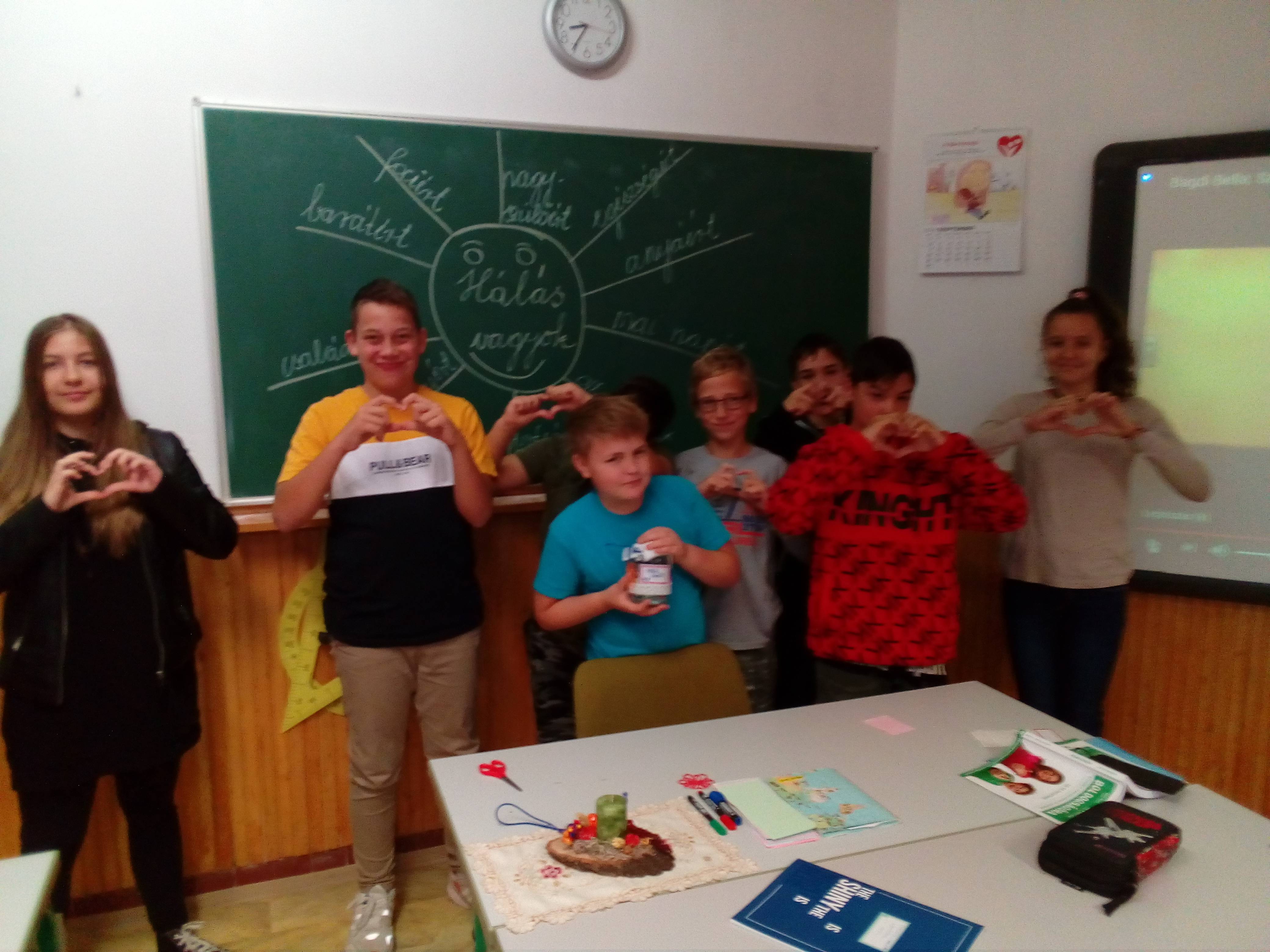 Az elmúlt hónapban a hála témakörét jártuk körül. Mi az Erkölcstan óra egyikén illesztettük programunkba a boldogságórát.