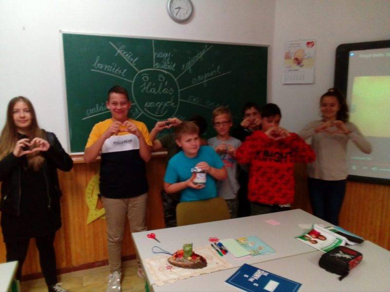 Közösen hallgattunk a választható zenékből, végeztünk légzőgyakorlatot, majd közös beszélgetés után elkészítettük a hálanapocskát és a hála befőttet. Az óra végén célokat tűztünk ki, hogy a következő héten ki milyen módon próbál hálát gyakorolni a társa felé. Nagy izgalommal várjuk az Októberi téma feldolgozását!