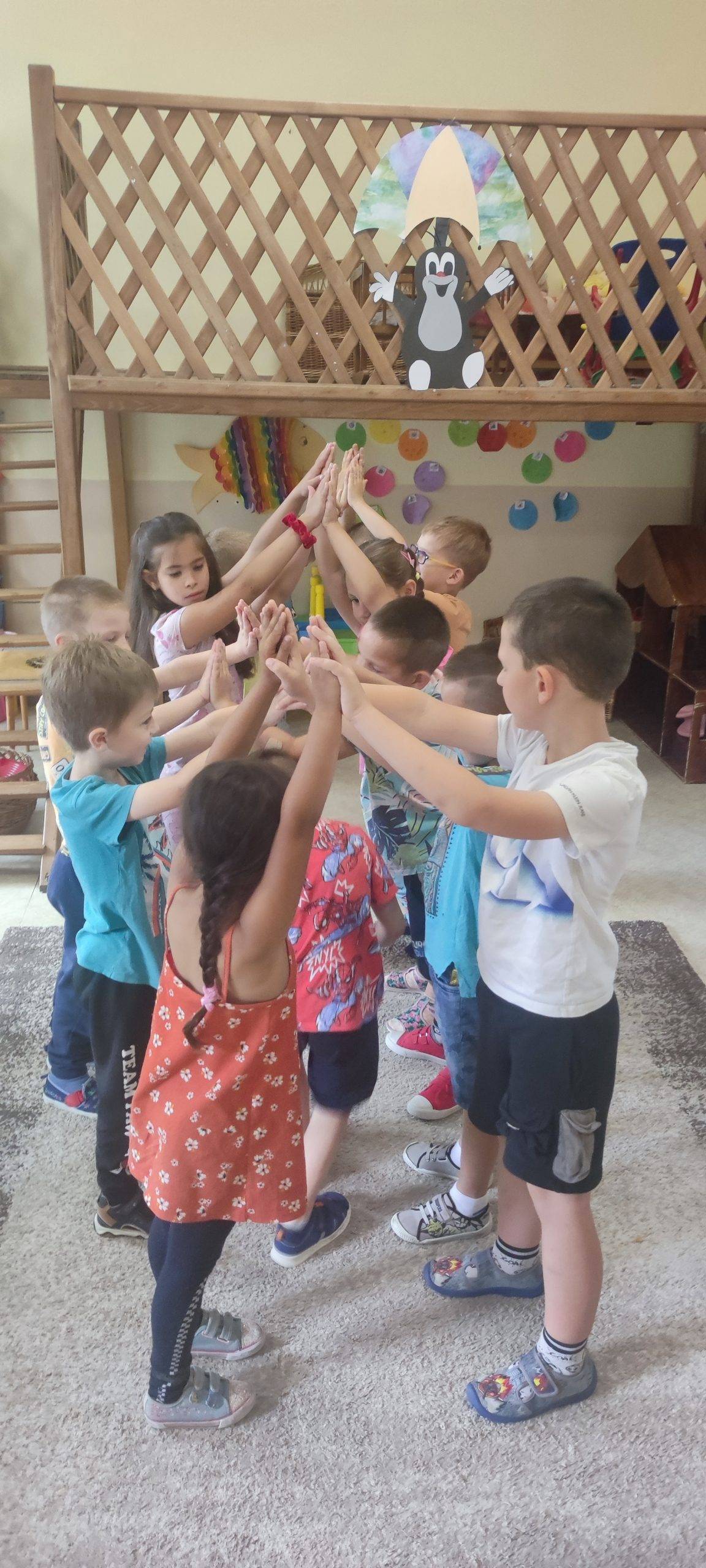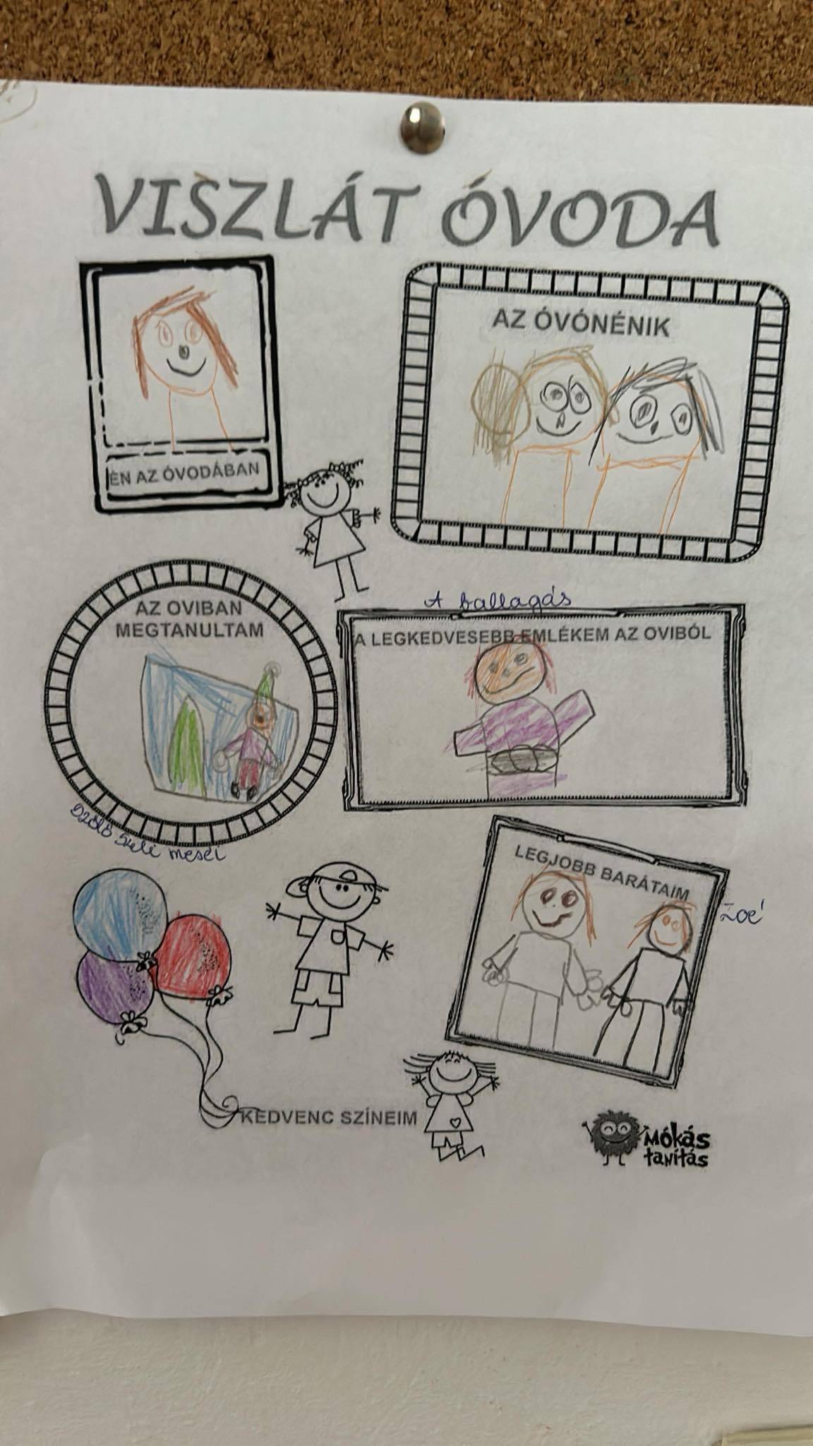 A nevelési év utolsó napjain Viszlát óvoda címmel emléklapot készíthettek, aminek az egyik hívószava”:amit az oviban megtanultam” . Több alkotás született, amik a boldogságórás játékos feladatokat tükrözték. A „kedvenc ovis emlékem” hívószóra sokan rajzolták le az ovit, szívecskékkel és a barátaik jelét vagy az épületbe vagy a szívekbe illesztették. Számunkra ez egyértelműen jelezte, hogy a céljaink sikerültek, elvetettük a „boldogság magvait”. Végezetül szeretetfolyosó játékkal zártuk a hónapot és megajándékoztuk őket a Hála oklevéllel.