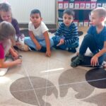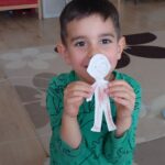 Novemberi Boldogságóránk a társas kapcsolatok ápolásáról szólt. A foglalkozást egy beszélgetéssel indítottam, ahol mindenki elmondta, hogy szerinte milyen egy jó barát és miért fontosak számunkra a társas kapcsolatok. Beszélgettünk, kinek, ki a barátja és miért? Meghallgattuk és táncoltunk „Ha boldog vagy , mutasd meg mindenkinek…” c. dalra. Relaxációs gyakorlatokat csináltunk. Bábokkal elmeséltem a Süni irigy lesz c. mesét. Elkészítettük a barátság hálóját. Mit szeretek benned? kérdésre sok kedves válasz született, mely erősítette a gyermekek önbizalmát. Szívecskére rajzoltak annak, akit a legjobb barátjuknak tekintenek. Végezetül elkészítettük a közös barátság láncunkat. A gyerekek nagyon ügyesen együtt tudtak dolgozni egymással.