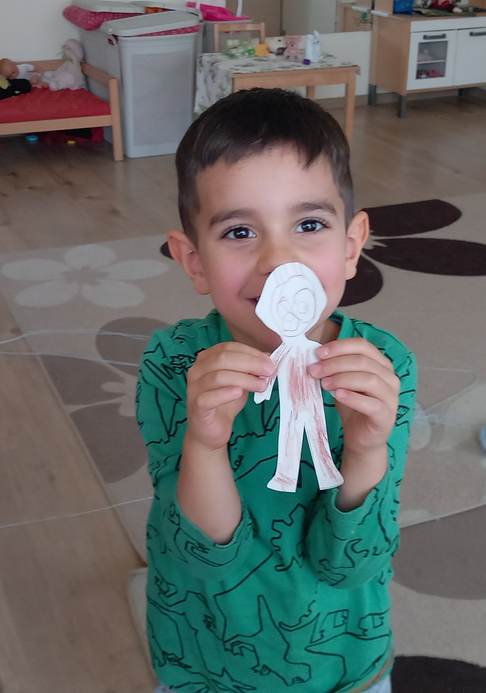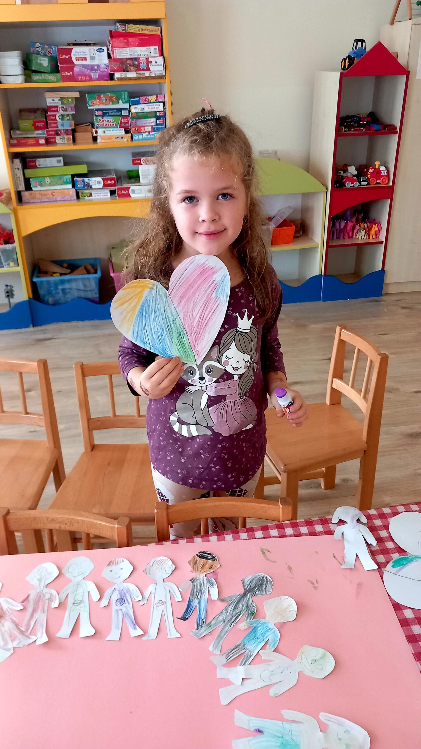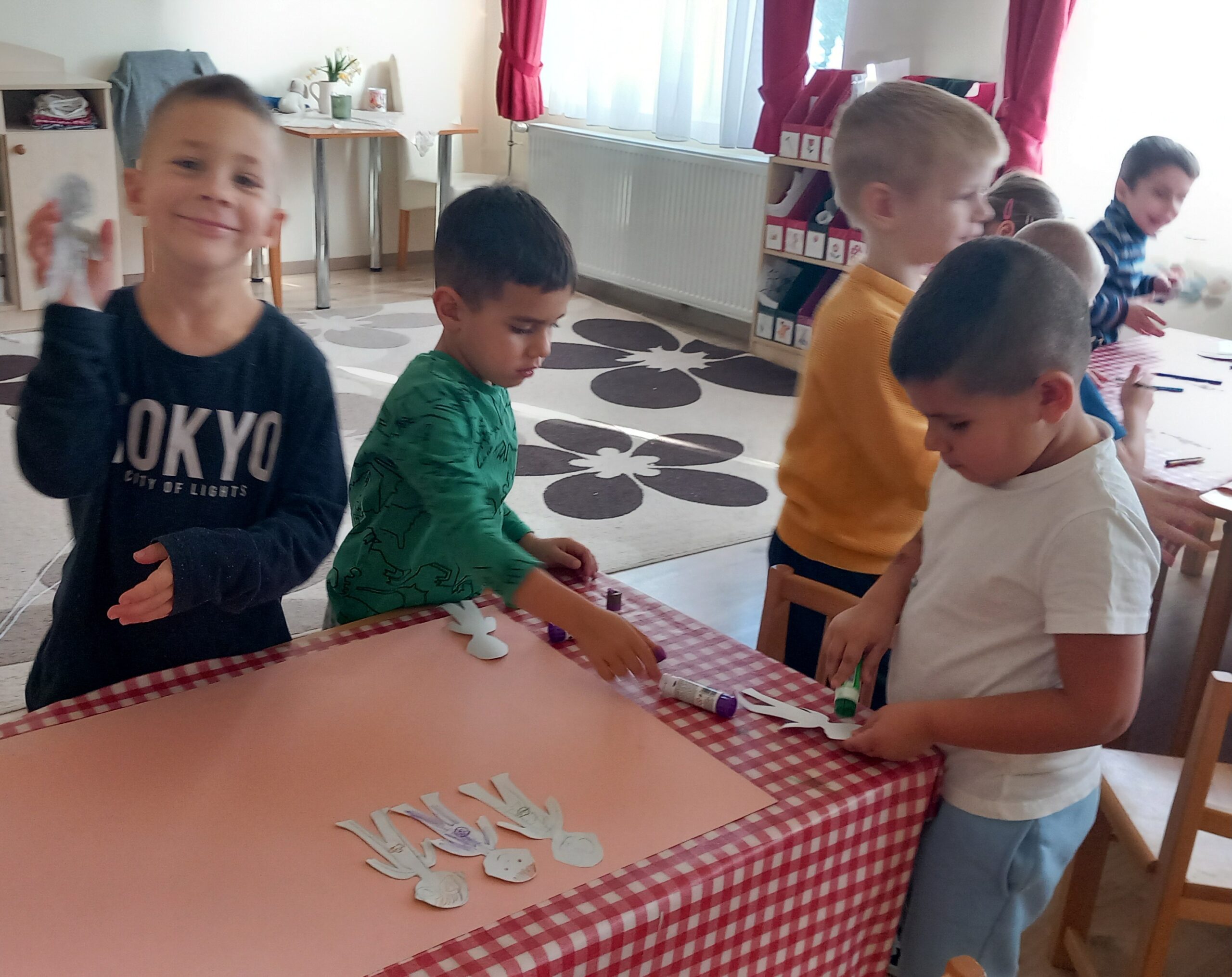 Novemberi Boldogságóránk a társas kapcsolatok ápolásáról szólt. A foglalkozást egy beszélgetéssel indítottam, ahol mindenki elmondta, hogy szerinte milyen egy jó barát és miért fontosak számunkra a társas kapcsolatok. Beszélgettünk, kinek, ki a barátja és miért? Meghallgattuk és táncoltunk „Ha boldog vagy , mutasd meg mindenkinek…” c. dalra. Relaxációs gyakorlatokat csináltunk. Bábokkal elmeséltem a Süni irigy lesz c. mesét. Elkészítettük a barátság hálóját. Mit szeretek benned? kérdésre sok kedves válasz született, mely erősítette a gyermekek önbizalmát. Szívecskére rajzoltak annak, akit a legjobb barátjuknak tekintenek. Végezetül elkészítettük a közös barátság láncunkat. A gyerekek nagyon ügyesen együtt tudtak dolgozni egymással.