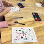 A következő tevékenység a barátság-karkötő készítése volt. Minden gyermek színes fonalakból és gyöngyökből saját kis karkötőt alkotott, amelyet aztán egy általuk választott párjuknak ajándékoztak. Nagyon megható volt látni, milyen örömmel adták tovább a gyerekek a saját készítésű ajándékot, sok kedves szó és mosoly hangzott el közben