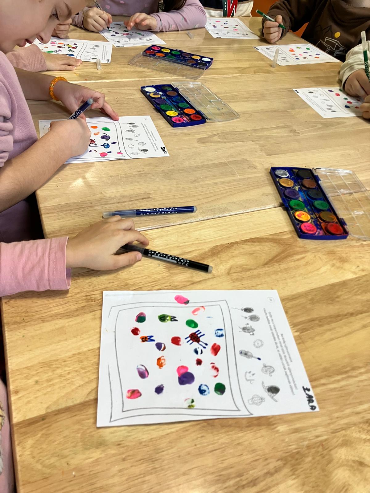 A “Süni irigy lesz” című mesével folytattuk a tevékenységet. A gyerekek érdeklődve hallgatták végig Süni történetét, majd megbeszéltük, hogy miért lehetett irigy, és hogyan viselkedtek a szereplők. A következőkben barátság-ujjlenyomatokat gyűjtöttek társaiktól, majd különféle ábrákat rajzoltak meg.