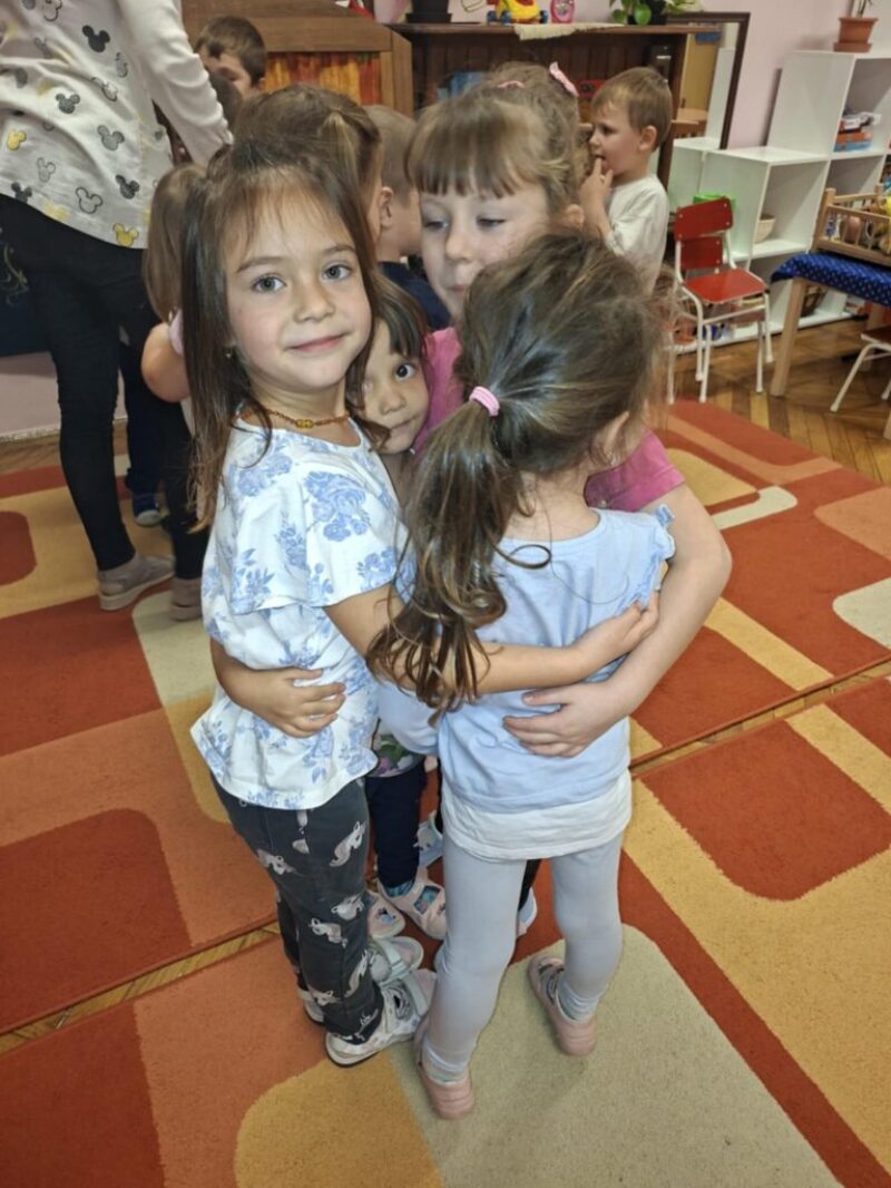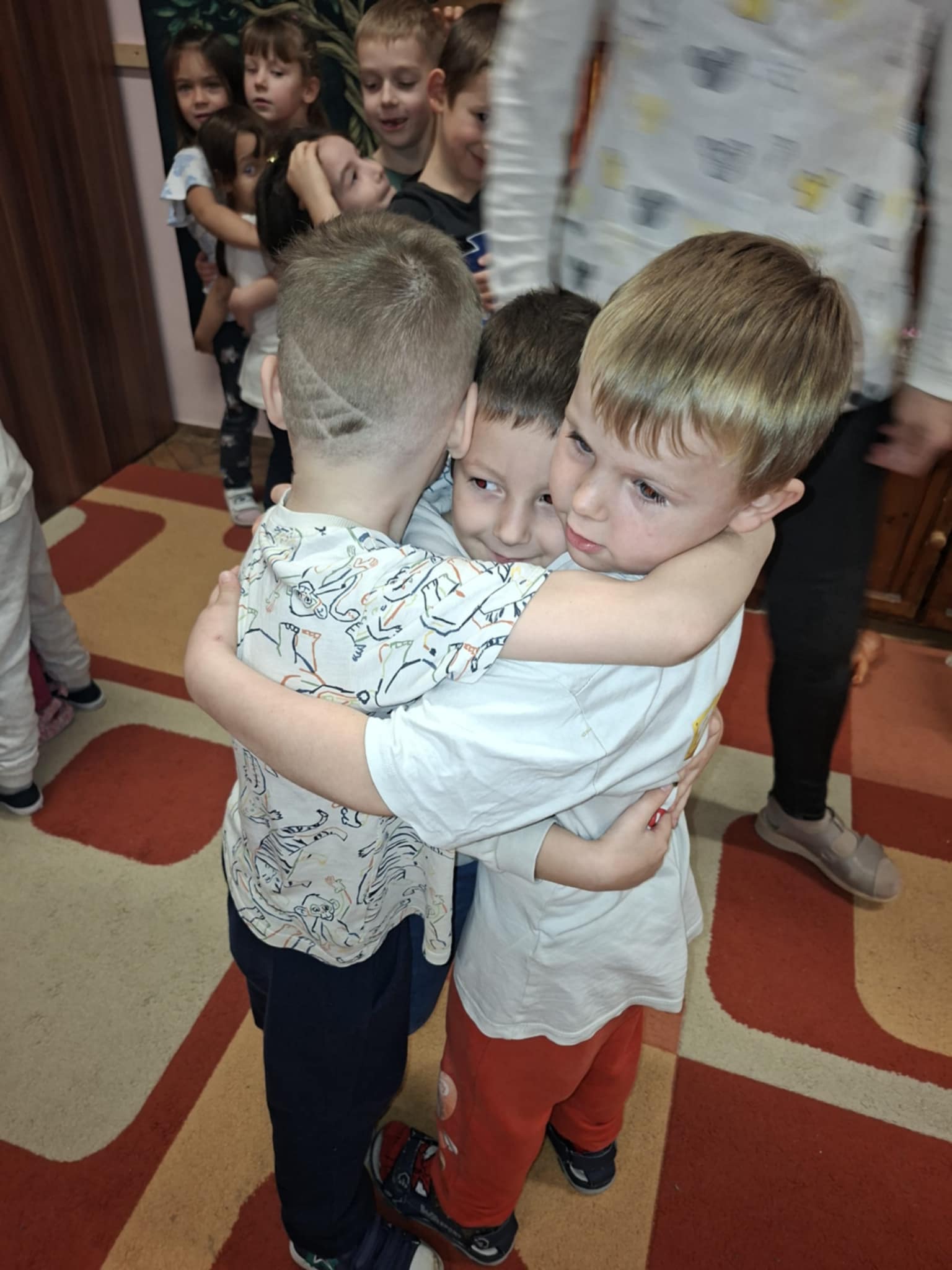 A foglalkozás utolsó feladata az volt, hogy elindítottam Bagdi Bella: Ha boldog vagy, mutasd meg dalát. Amikor a zene szól, akkor a gyerekek járkálnak a szőnyegen. Amikor megállítom a zenét, öleljen meg valakit, aki a legközelebb áll hozzá. Többször megállítom a zenét és mindig valaki mást kell megölelni a gyereknek.
