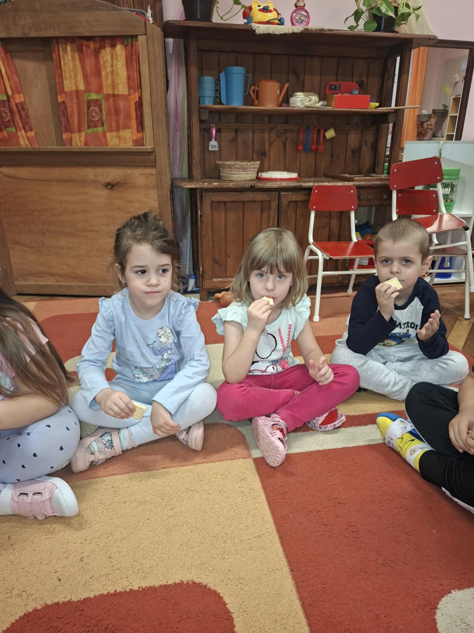 Ezek után elővettem a vásárolt Háztartási kekszet és minden gyereknek adtam egy „ barátság kekszet” a zacskóból. Az volt a feladat, hogy ezt a barátság kekszet törje kettő felé és adja oda az egyik felét a barátjának, a másik felét pedig egye meg ő. Így elméletileg, mindenki eszik egy egész háztartási kekszet. Az elmélet beigazolódott.