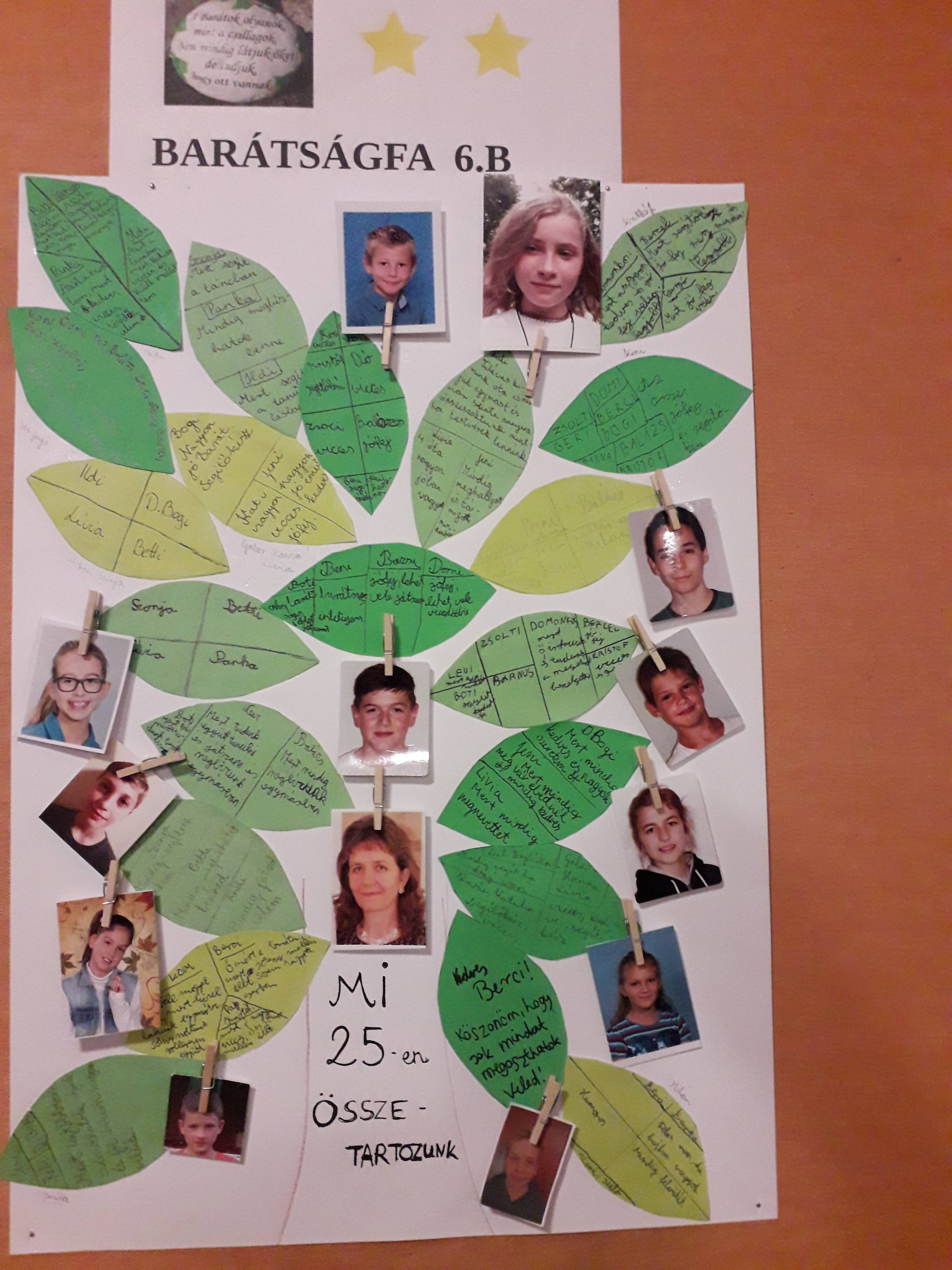 A Társas kapcsolatok témával kapcsolatban sok mindent csináltunk. Az eddig is nagyon jó osztályközösségünket azzal erősítettük, hogy szerveztünk két gyárlátogatást az ICO és a BONBONETTI gyárba, ahol megfigyeltük a tollak és a bonbonok készítését. Sikerült szerezni egyforma ” Jobb Veled a Világ” karkötőt, amivel barátság fényképet fotóztunk. Készült tabló, ” Barátságfa”, ahol a fa leveleibe kerültek a legjobb barátok nevei és az, miért őket választottuk. Szerveztünk DISCÓt, ahová más osztályokból is hívtunk meg barátokat. Az órán énekeltük a hónap dalát” Jobb Veled a Világ”, beszélgettünk a családról, osztályról, mint közösségről és a barátságról is. Idézeteket olvastunk és értelmeztünk és közösen felállítottuk az osztály karácsonyfáját és feldíszítettük a termünket.