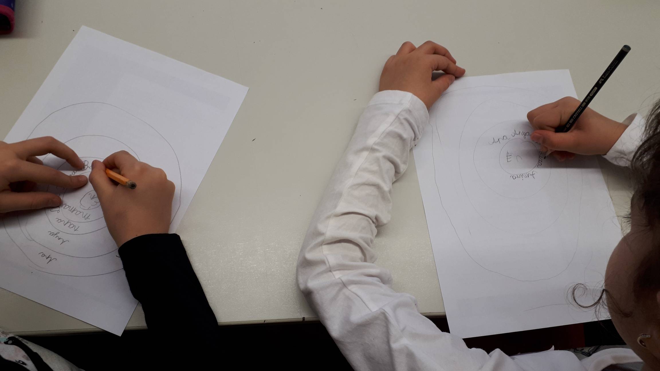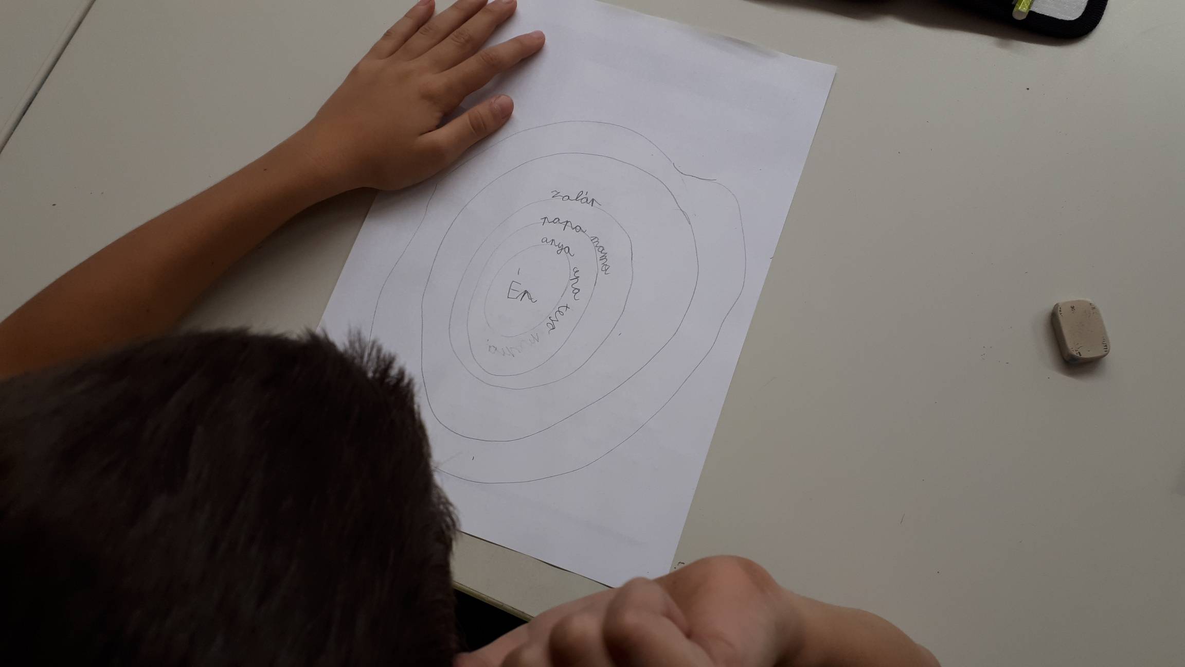 Megbeszéltük, hogy kik azok a személyek, akik közel állnak hozzánk, akikre számíthatunk, ha valaminek örülünk vagy ha szomorúak vagyunk. Megpróbáltuk ezt egy lapon ábrázolni körök segítségével.