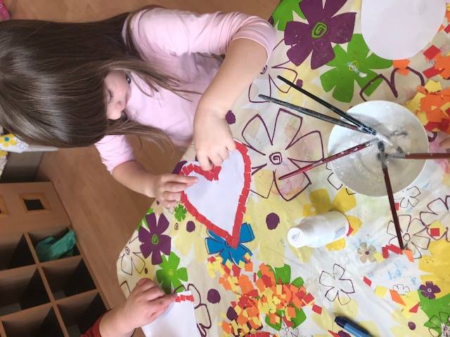 Már 3. hónapja, hogy szervezzük a boldogság órákat. A gyerekek már ismerik a hónapok játékait, gyakorlatait. Nagyon szeretik a hónap dalát, minden reggel meghallgatjuk. Sokat barkácsoltunk, rajzoltunk ebben a témában. A Tűz témakörébe is beépítettük a program elemeit, minden gyermek a barátjának készített mozaik technikával tüzes szívet. Fűztünk egymásnak és a felnőtteknek ajándékba karkötőt. A barátság, az egymás iránti szeretet és tisztelet kialakítása nagyon fontos csoportunk, illetve az egész óvoda életében. Sokat beszélgettünk a társas kapcsolatokról, a barátságok ápolásáról, arról, hogy mit szabad és mit nem egy barátságban, hogy ki az igaz barát stb. A téma lezárásaként a család témakört választottuk, hiszen ez az ember legfontosabb társas kapcsolata!