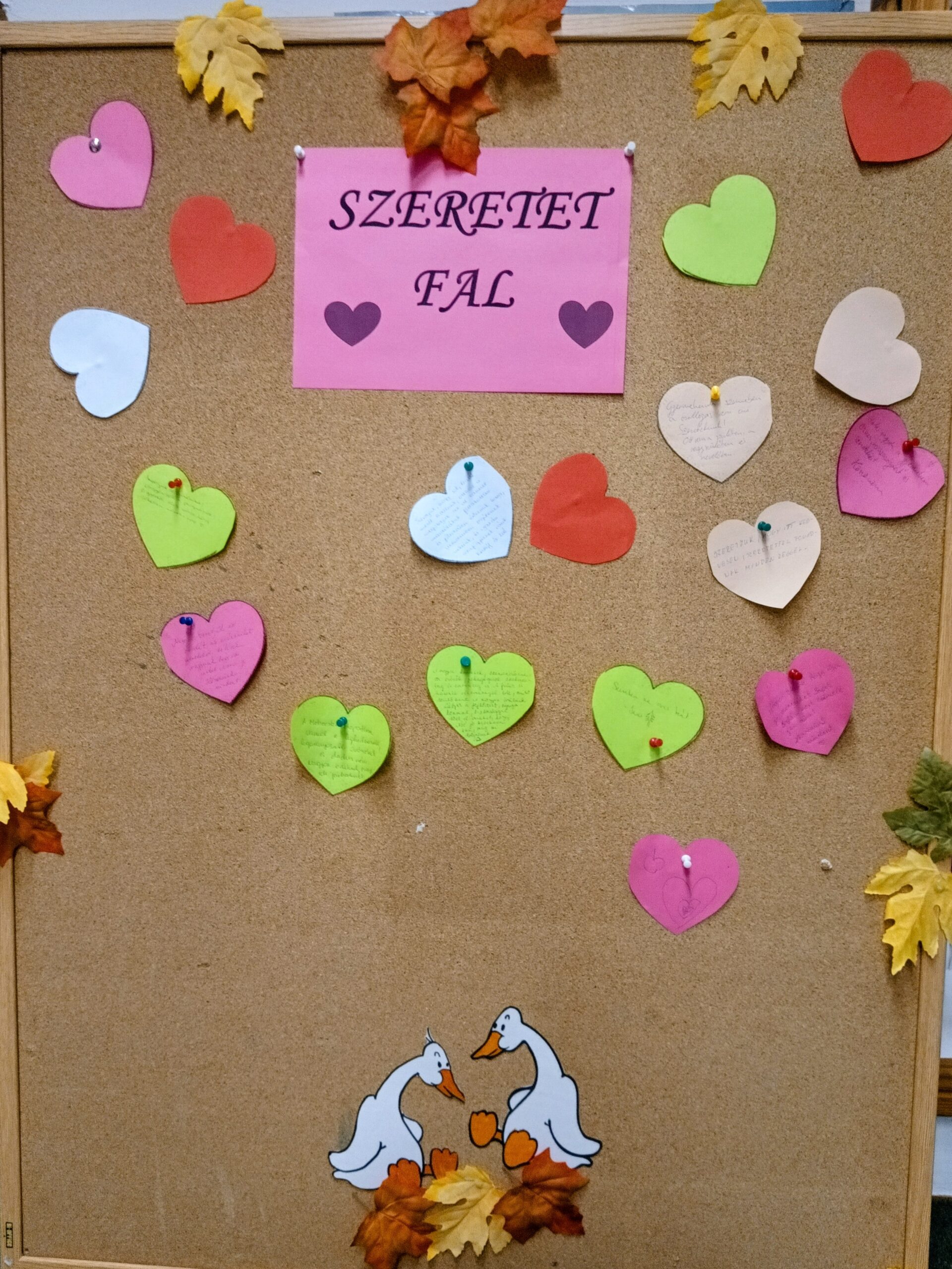 A társas kapcsolatok ápolása témát Márton nap köré szervezve valósítottuk meg, amely kiváló alkalmat teremtett a közösségi élmények mélyítésére. A gyerekekkel közösen beszélgettünk az összetartozásról, a segítés fontosságáról és a jócselekedetek erejéről. A programban aktívan bevontuk a szülőket is: együttműködésükkel Szeretetfalat készítettünk, amelyre az óvodával és egymással kapcsolatos pozitív gondolatok, üzenetek kerültek. A gyerekek örömmel fedezték fel, hogy mennyi kedves szó és támogató érzés veszi őket körül nap mint nap.