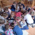 A november havi boldogságórán a barátságról és a társas kapcsolatokról beszélgettünk a gyerekekkel. Elmondhatták, hogy miért szoktak szomorúak lenni és ki szokta megvigasztalni őket. Megbeszéltük azt is, hogy jó érzés másokkal megosztani problémáinkat és milyen jól esik a társak vigasztalása, biztatása és segítése a bajban. Kitértünk arra is, hogy milyen módon tudjuk megvigasztalni a társainkat. A beszélgetést követően eljátszhatták azt a szituációt, hogy az egyik gyermek szomorú és a másik pedig megvigasztalja. Nagy lelkesedéssel vállalkoztak erre a feladatra és egymás között beszélték meg, hogy ki lesz a szomorú és ki fog vigasztalni. Végül négy kis szőnyegen négy csapatot alkottunk: hópehely, falevél, pillangó és labda jelű csoportokat. A szőnyegeken színes kockák sorakoztak, amelyekből közösen alkothattak építményt. A munka végeztével elmondhatták véleményüket az elkészült alkotásokról. Nagyon tetszett a gyerekeknek a foglakozás, örömmel vettek részt a játékokban.