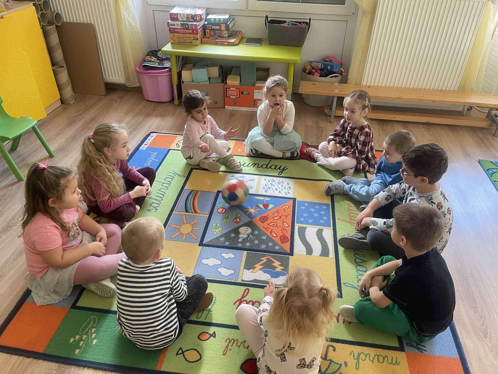 Süni csoport: Kinek is adod a labdát? Megy a labda vándor útra… szeretnénk, hogy összekötne minket ez a labda, mint egy erős barátiköteléket, amit érzünk egymás iránt. Énekkel vidám labdázással kifejezzük egymás iránti barátságunkat.