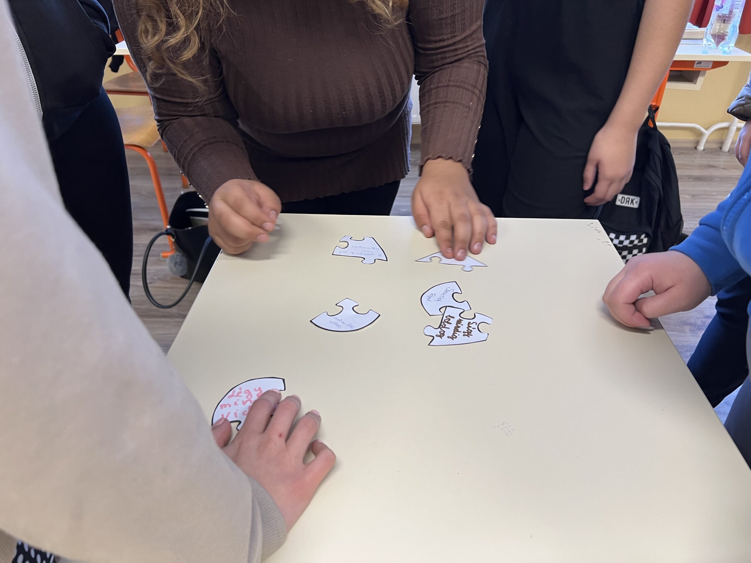 Minden tanuló kap egy puzzle darabot, amire egy kedves üzenetet kell írnia. Majd a tanulók megkeresik a Szív puzzle hiányzó darabjait és együtt összerakják a szívet. 1 kedves üzenetért mindenki 4-et kap.