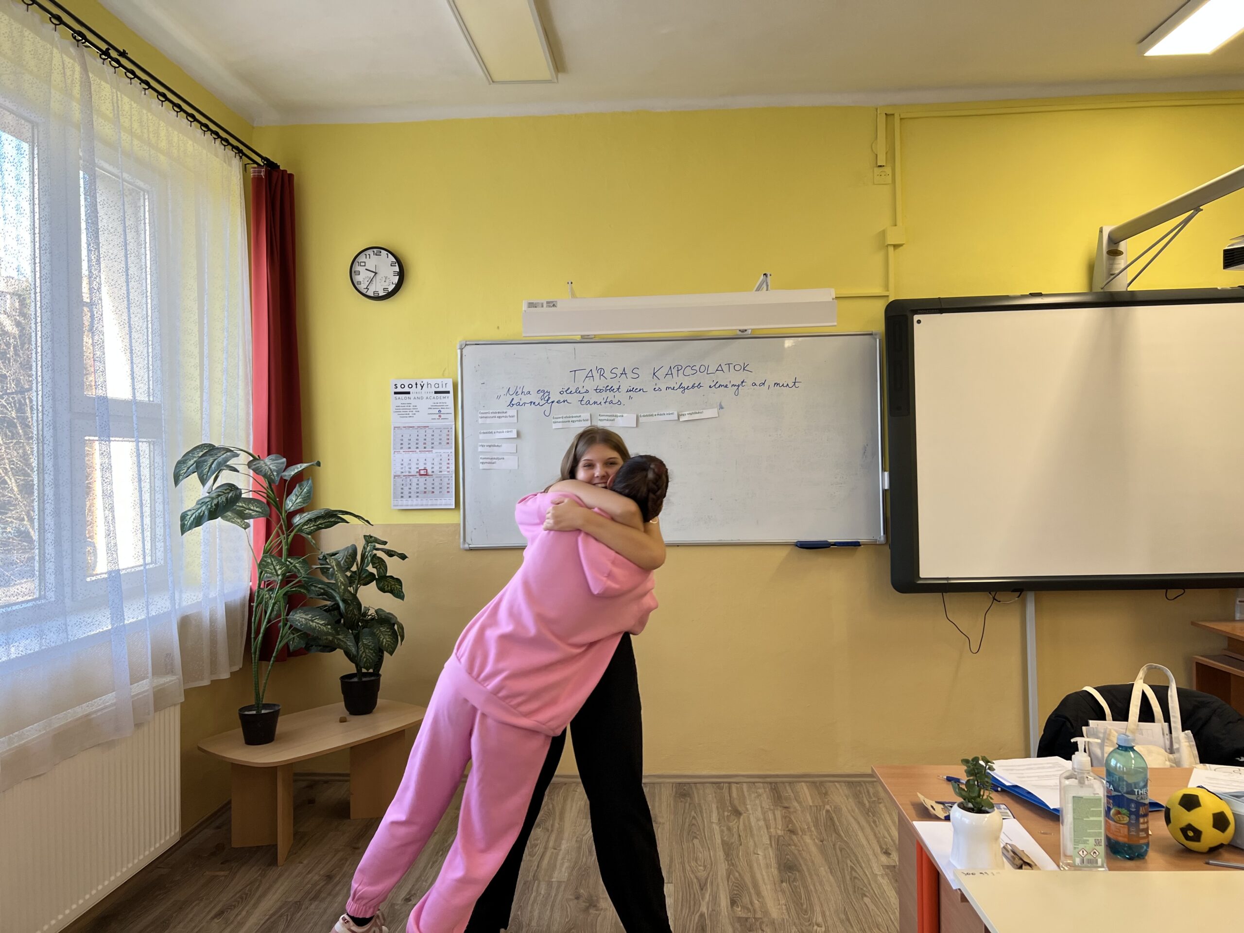 A következő idézet felkerül a táblára: „Néha egy ölelés többet üzen és mélyebb élményt ad, mint bármilyen tanítás.” (Müller Péter)