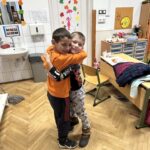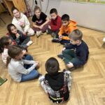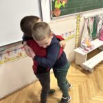 A Boldogságóra november hónapban a társas kapcsolatok ápolásáról szólt. A foglalkozás elején egy távíróoszlopot készítettünk, ahol kedves jeleket rajzoltunk egymás határa. Ezután körbe ültünk, hogy jobban egymásra tudjunk figyelni. Sorban mindenki megkérdezte a mellette ülőtől: „Kis barátom, hogy vagy?”, és közben igyekeztünk őszintén meghallgatni a választ. Ahogy haladtunk körbe, egyre felszabadultabban beszéltünk az érzéseinkről és arról, hogyan telt a napunk. A foglalkozás végén elmondtuk egymásnak, miért szeretjük és miért becsüljük a másikat. Végül megöleltük egymást, így téve még erősebbé a köztünk lévő barátságot.