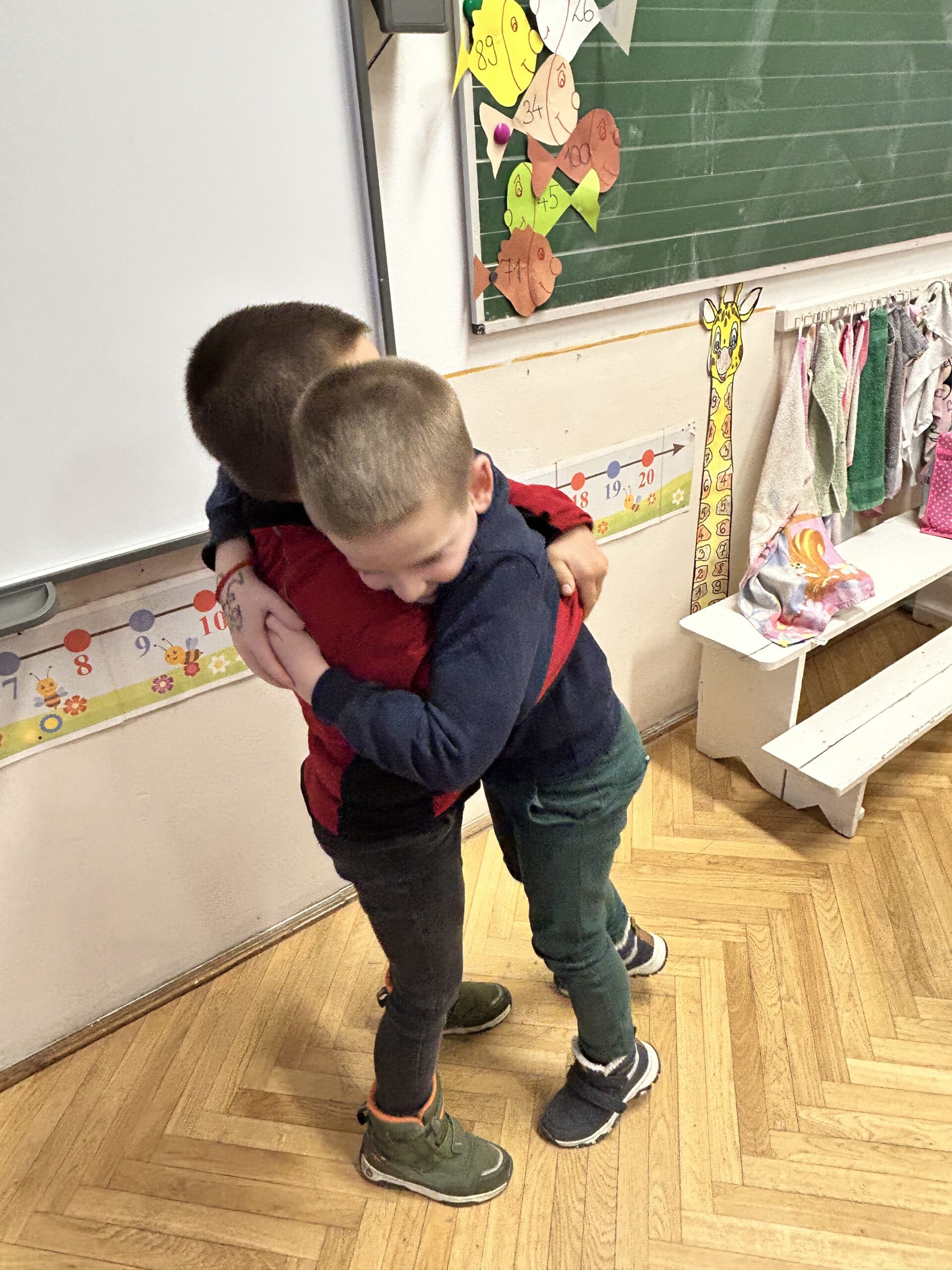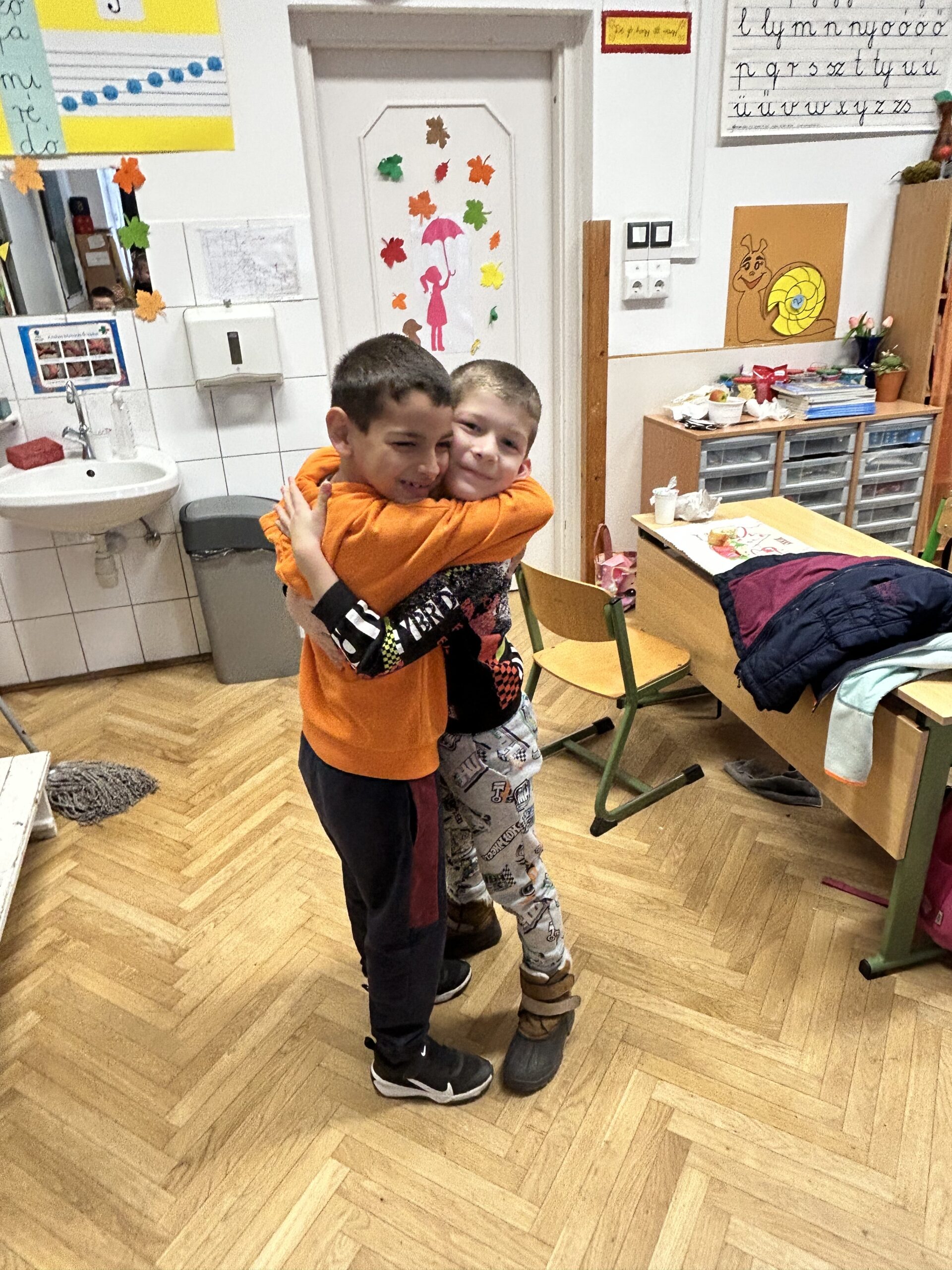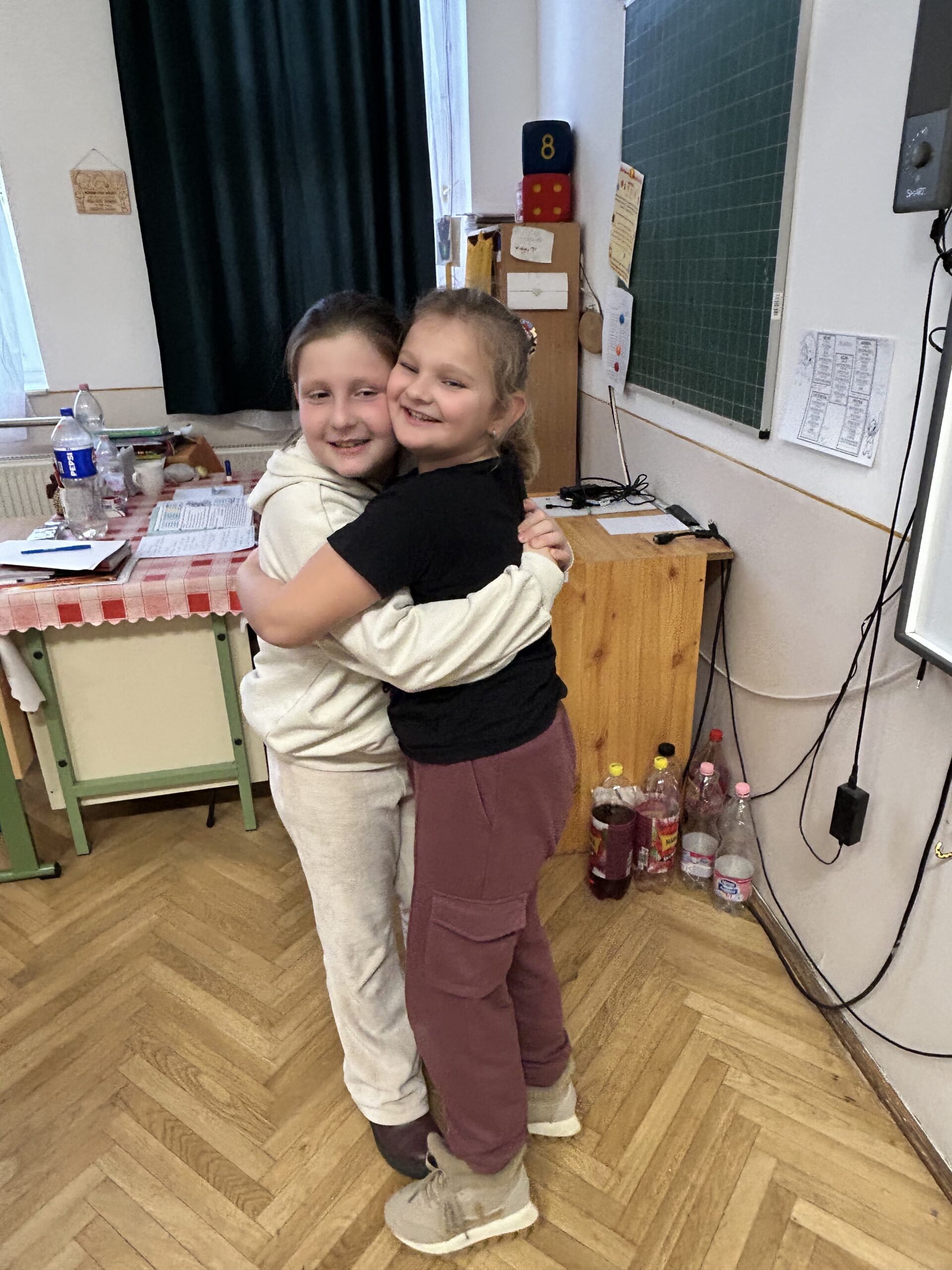 A Boldogságóra november hónapban a társas kapcsolatok ápolásáról szólt. A foglalkozás elején egy távíróoszlopot készítettünk, ahol kedves jeleket rajzoltunk egymás határa. Ezután körbe ültünk, hogy jobban egymásra tudjunk figyelni. Sorban mindenki megkérdezte a mellette ülőtől: „Kis barátom, hogy vagy?”, és közben igyekeztünk őszintén meghallgatni a választ. Ahogy haladtunk körbe, egyre felszabadultabban beszéltünk az érzéseinkről és arról, hogyan telt a napunk. A foglalkozás végén elmondtuk egymásnak, miért szeretjük és miért becsüljük a másikat. Végül megöleltük egymást, így téve még erősebbé a köztünk lévő barátságot.