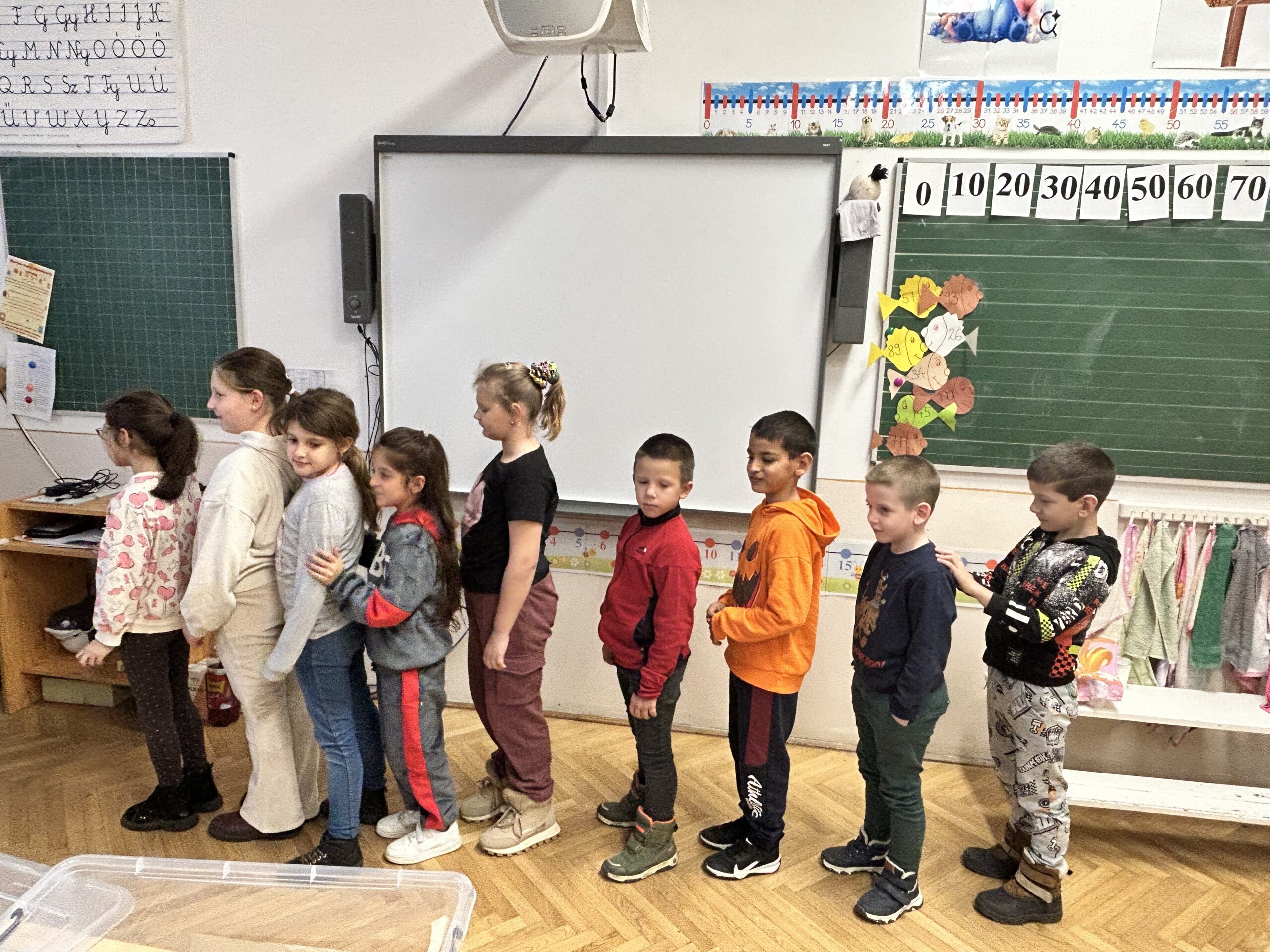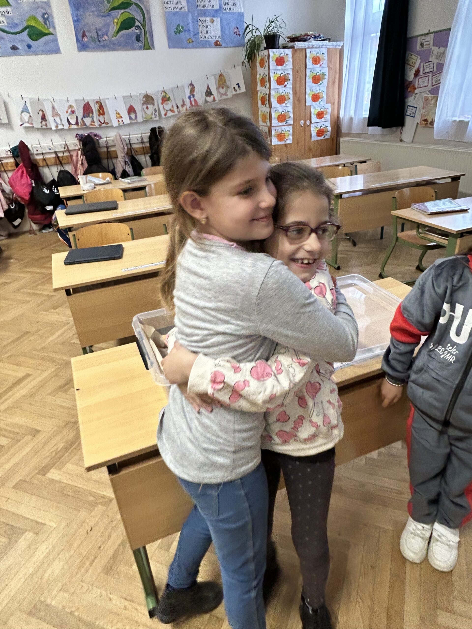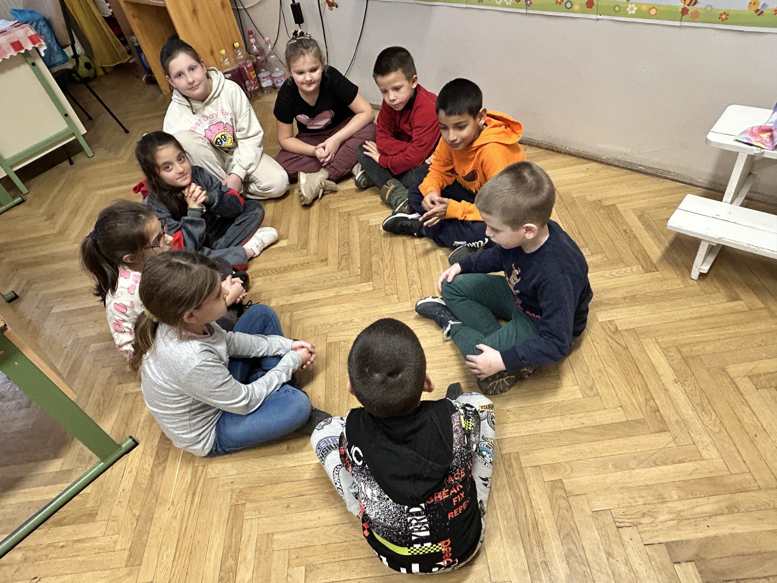 A Boldogságóra november hónapban a társas kapcsolatok ápolásáról szólt. A foglalkozás elején egy távíróoszlopot készítettünk, ahol kedves jeleket rajzoltunk egymás határa. Ezután körbe ültünk, hogy jobban egymásra tudjunk figyelni. Sorban mindenki megkérdezte a mellette ülőtől: „Kis barátom, hogy vagy?”, és közben igyekeztünk őszintén meghallgatni a választ. Ahogy haladtunk körbe, egyre felszabadultabban beszéltünk az érzéseinkről és arról, hogyan telt a napunk. A foglalkozás végén elmondtuk egymásnak, miért szeretjük és miért becsüljük a másikat. Végül megöleltük egymást, így téve még erősebbé a köztünk lévő barátságot.